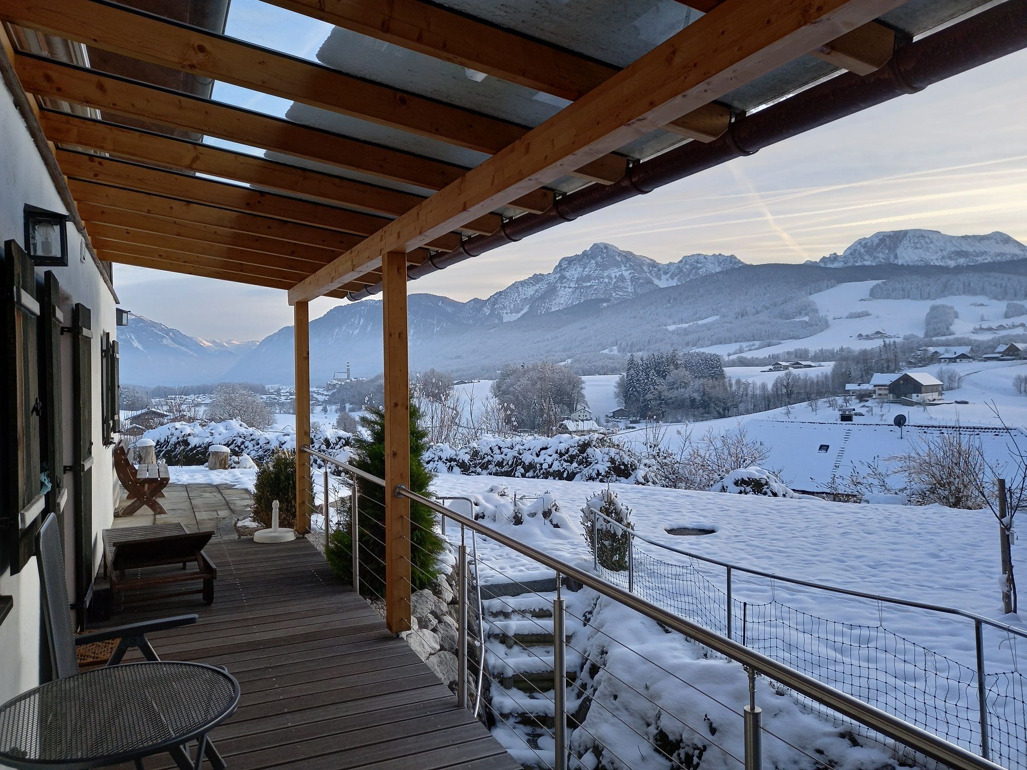 Unser Haus liegt etwas erhöht über dem Ortsteil Höglwörth, der zur Gemeinde Anger gehört und mit dem Höglwörther See, der einzigartigen Tier- und Pflanzenwelt im Landschaftsschutzgebiet und der gewaltigen Bergkulisse zu einem der schönsten Flecken Erde im Rupertwinkel zählt. Die Ferienwohnung liegt nur wenige Gehminuten vom ehemaligen Augustiner Chorherrenstift und dem Höglwörther See, als Bade- und Wandermöglichkeit, entfernt. Durch den ebenerdigen Eingang über die Terrasse ist die Ferienwohnung auch für Rollstuhlfahrer geeignet. Im Garten steht eine Grillmöglichkeit sowie Gartenmöbel zur Verfügung. Außerdem gehört ein kostenloser Pkw-Stellplatz zur Ferienwohnung.