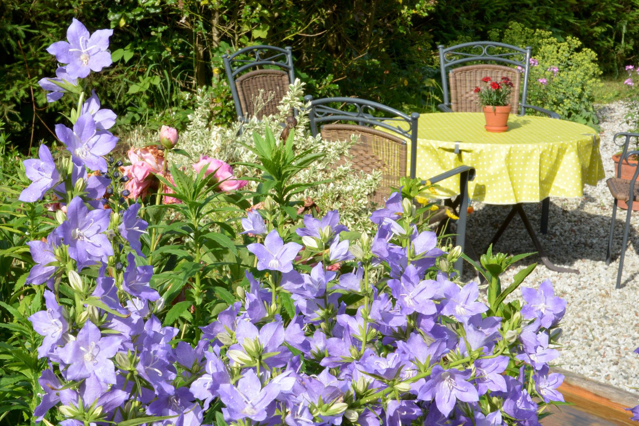 Im Außenbereich unseres Hauses gibt es schöne Sitzmöglichkeiten für Gäste im Garten und an unserem kleinen Weiher. Für umfangreiche Wander- und Ausflugstipps liegen jeweils persönlich erstellte Gäste-Infomappen bereit. Unsere Lage zu den touristischen Highlights ist ideal - Königssee und Jennerbahn sind sogar auch zu Fuß in kurzer Zeit erreichbar. Die Jenner-Bergbahn führt Sie hinauf zum wunderbaren Aussichtsberg Jenner mit seinen zahlreichen Wandermöglichkeiten. Weitere Einrichtungen im Umkreis von nur 10 Gehminuten sind: 3 Bushaltestellen, eine neue Kneippanlage, ein modernes Freibad, zahlreiche Gaststätten, Biergärten, Sole-Gradierwerk, Kinderspielplatz, Metzger, Bäckerei, Konditorei mit Café, Postagentur, Bankfiliale, Gemeindebücherei, verschiedene Ärzte, die Tourist-Information, evang. und kath. Kirche und sogar Tennisplätze. Unseren Gästen mit E-Autos steht eine E-Ladestation am Haus zur Verfügung. Für Räder bieten wir einen großen abschließbaren Rad-Abstellraum. Bei Bedarf können unsere Gäste eine Gäste-Waschmaschine nutzen. Diese steht in einem separaten Raum im Erdgeschoß des Hauses, außerhalb der Ferienwohnung.
