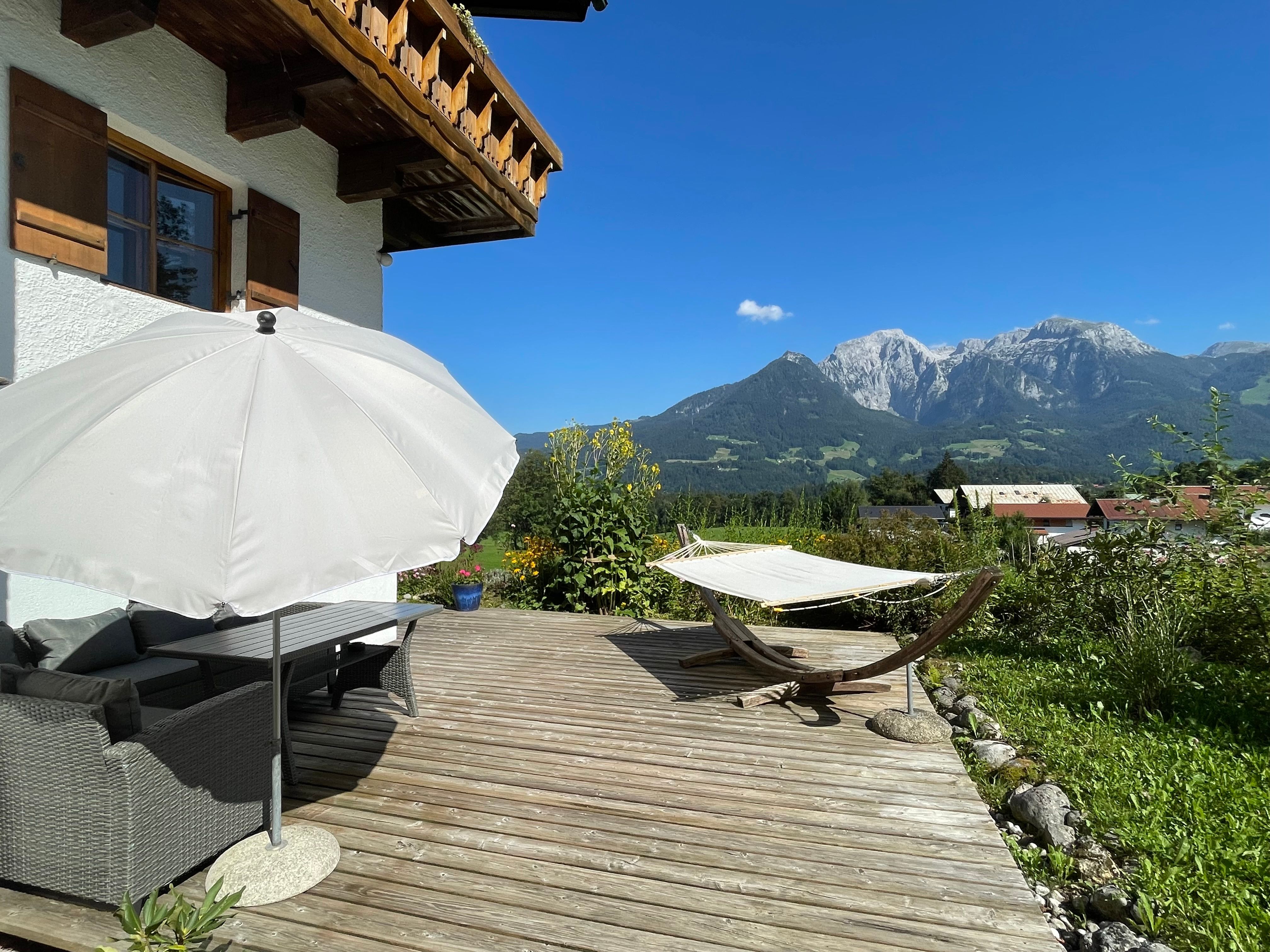 Unser schönes Haus liegt in ruhiger Alleinlage direkt am Waldrand. Es gibt einen eigenen Parkplatz von dem aus man die Ferienwohnung direkt erreicht. Die Terrasse bietet einen wunderschönen Ausbick über die Berchtesgadener Bergwelt. Von unserem Haus lassen sich auch direkt Wanderungen oder kleinere Spaziergänge starten, z.B. zum Söldenköpfel oder das Kreigerdenkmal am Böckelweiher.