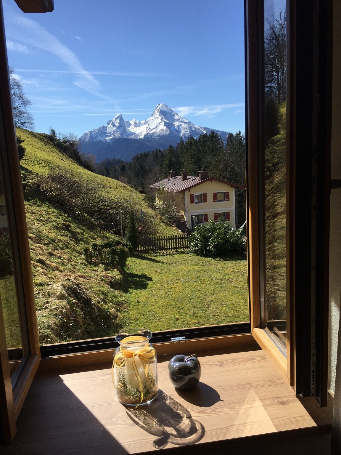 Unsere Ferienwohnung ist nur 3 Kilometer vom Ortskern Berchtesgaden entfernt und liegt dennoch in traumhafter Panoramalage auf 750 Metern Höhe. Das Haus befindet sich im denkmalgeschützten Ensemble neben der berühmten Barockwallfahrtskirche (bekannte Postkartenidylle). Vom Schlafzimmer, vom Wohnzimmer und von der Terrasse aus können Sie den großartigen freien Blick zum Watzmann genießen. Die Bushaltestelle ist nur 100 Meter entfernt. Eine Gaststätte mit gut bürgerlicher Küche befindet sich in der direkten Nachbarschaft. In unmittelbarer Umgebung finden Sie viele schöne Wanderwege. Unsere 87 qm große Ferienwohnung wurde 2019 komplett renoviert/saniert und mit hochwertigen Möbeln ausgestattet. Unser Haus ist ein Nichtraucherhaus und es sind keine Haustiere gestattet. Ein kostenloser Parkplatz steht Ihnen direkt vor unserem Haus zur Verfügung.