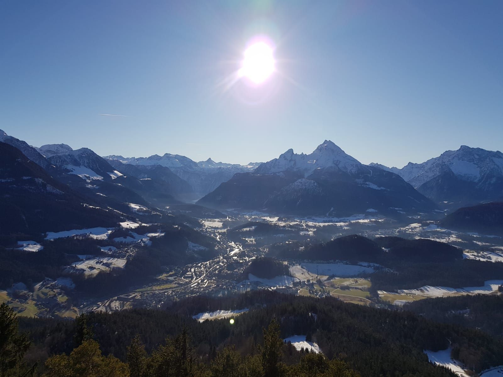 Erkunden Sie die atemberaubende Panoramalage der Ferienwohnung Watzmannblick Maria Gern, nur 3 km von Berchtesgaden entfernt, mit hochwertiger Ausstattung und herrlichem Blick auf den Watzmann.