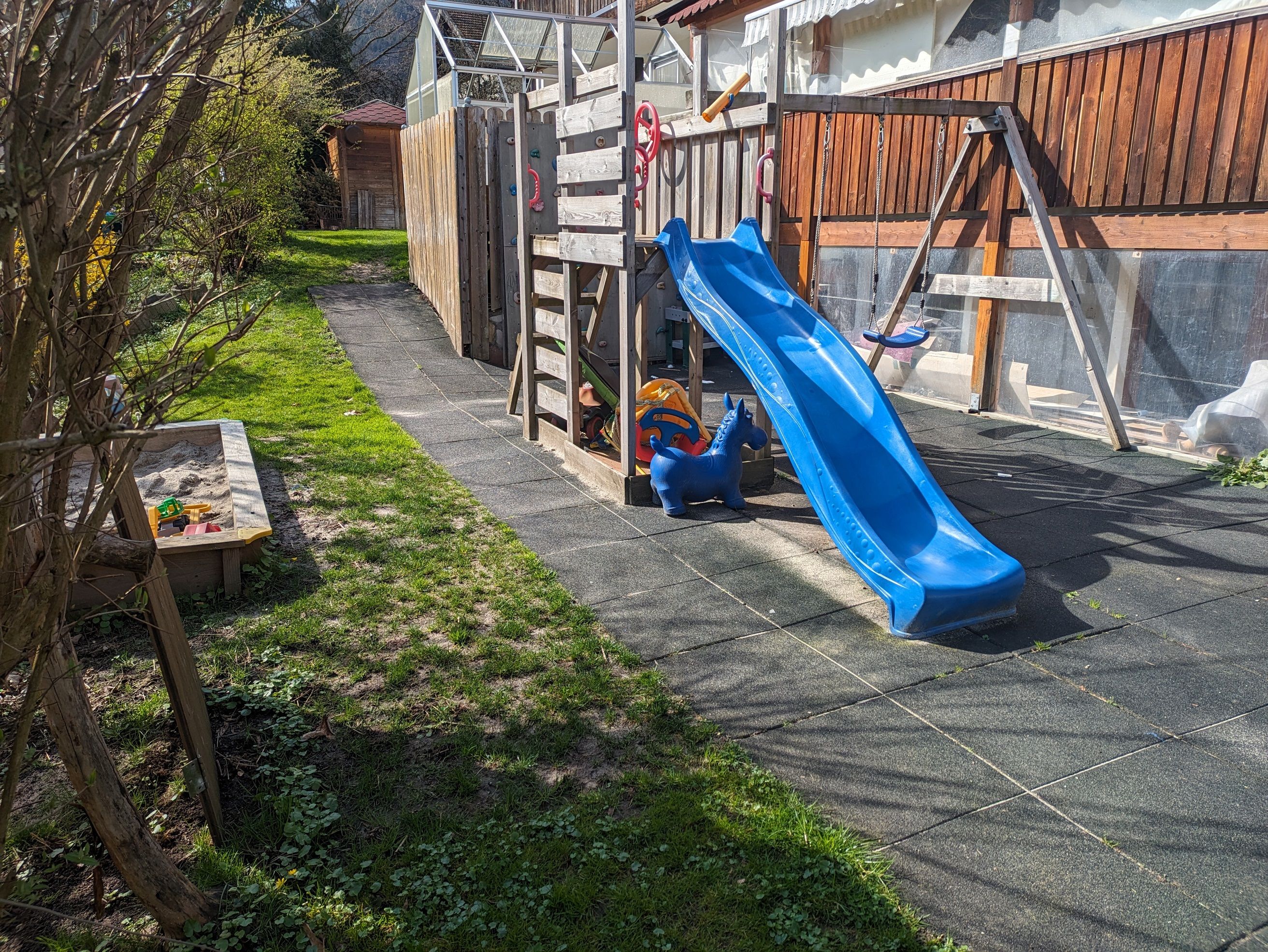 Unsere Ferienwohnung mit zwei separaten Schlafzimmern, einem großem Wohnzimmer und einer voll ausgestatteten Küche bietet ausreichend Platz. Zudem können unsere Gäste auch den Außenpool, den Spielplatz mit Sandkasten und Schaukel sowie das Trampolin nutzen. Kostenloses WLAN ist vorhanden.