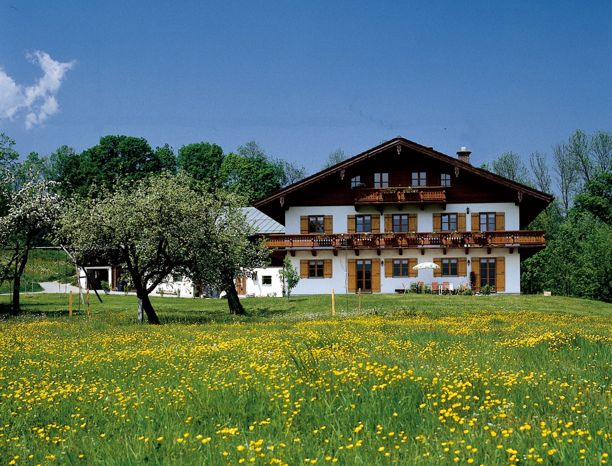 Unser Bauernhof liegt mitten im Grünen, in sehr schöner, ruhiger Lage am Ende einer Sackgasse. Mit Blick auf die gesamte Bergkette der Berchtesgadener Alpen, bieten wir Ihnen mit insgesamt 6 komfortabel eingerichteten Ferienwohnungen alle Voraussetzungen für einen erholsamen Urlaub. Sauna, Solarium, Fitness-Raum, Spielplatz, Grillplatz, Liegewiese u.v.a.m. stehen zur Verfügung.