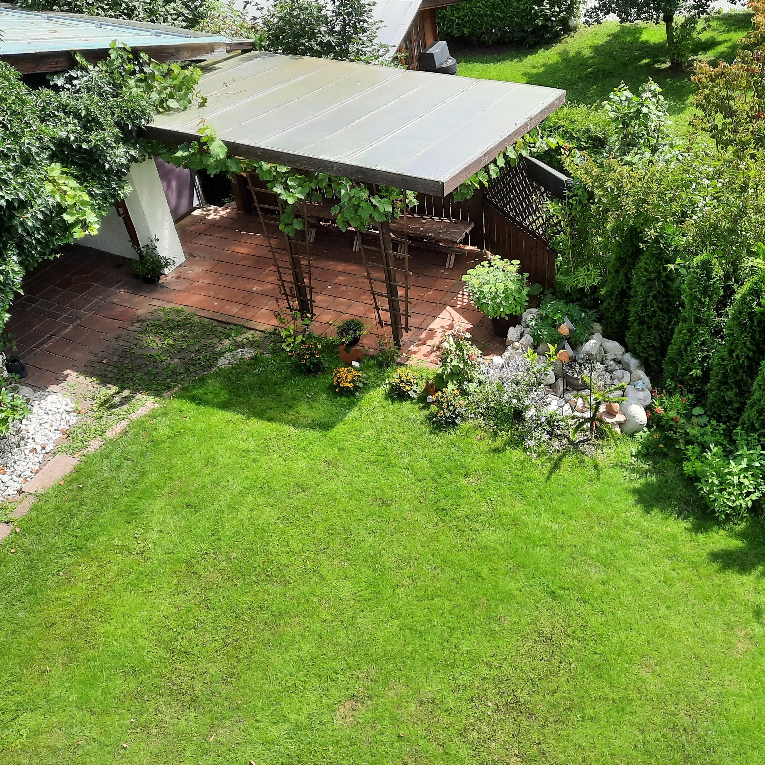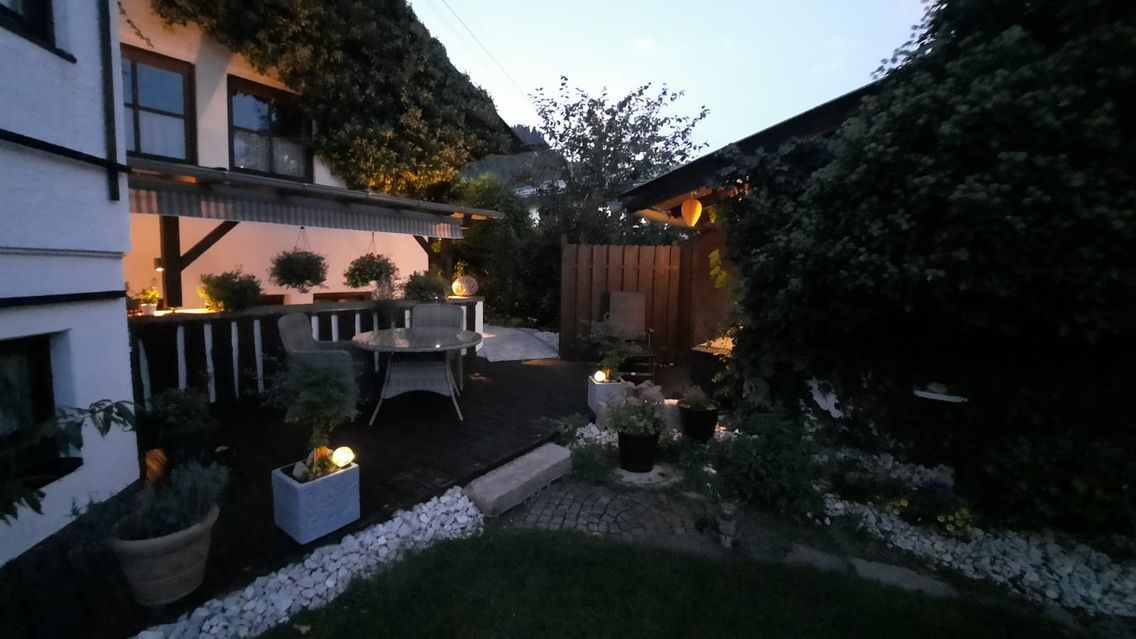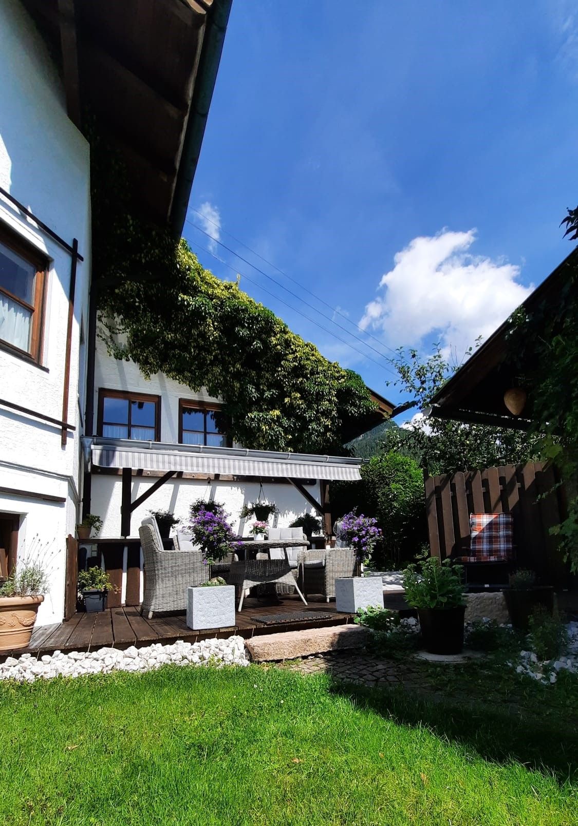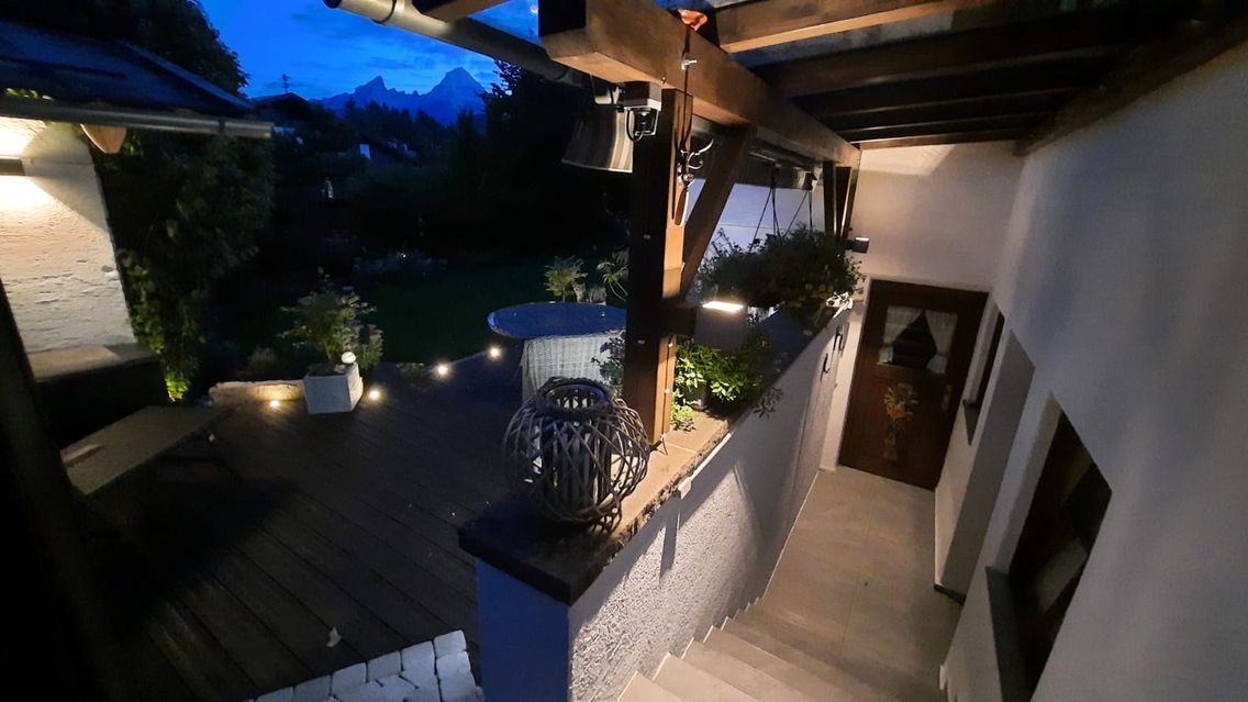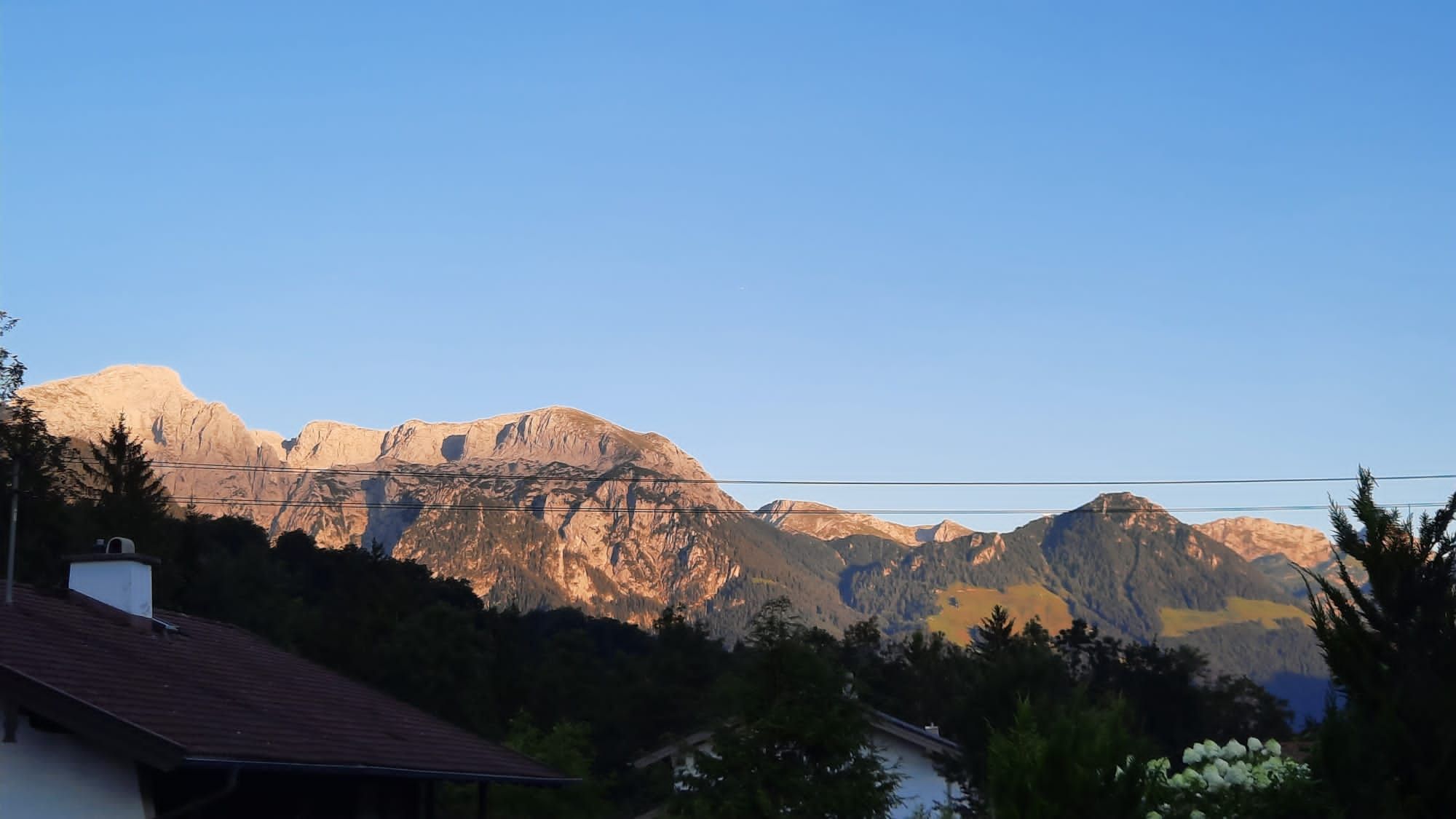 Landhaus mit vielen liebevollen Details und herrlichem Bergblick. Für gemütliche Stunden im Freien steht Ihnen eine große Terrasse mit elektrisch verfahrbaren Sonnenschutz und Gartenmöbeln mit Sitzkissen zur Verfügung. Auf der Liegewiese können Sie auf Gartenliegen den herrlichen Blick auf den Watzmann und die umliegende Bergwelt genießen.Ein Parkplatz befindet sich direkt am Haus (max. 1 Stellplatz). Informationsmaterial für Wanderungen, Berg- und Radtouren liegen aus.