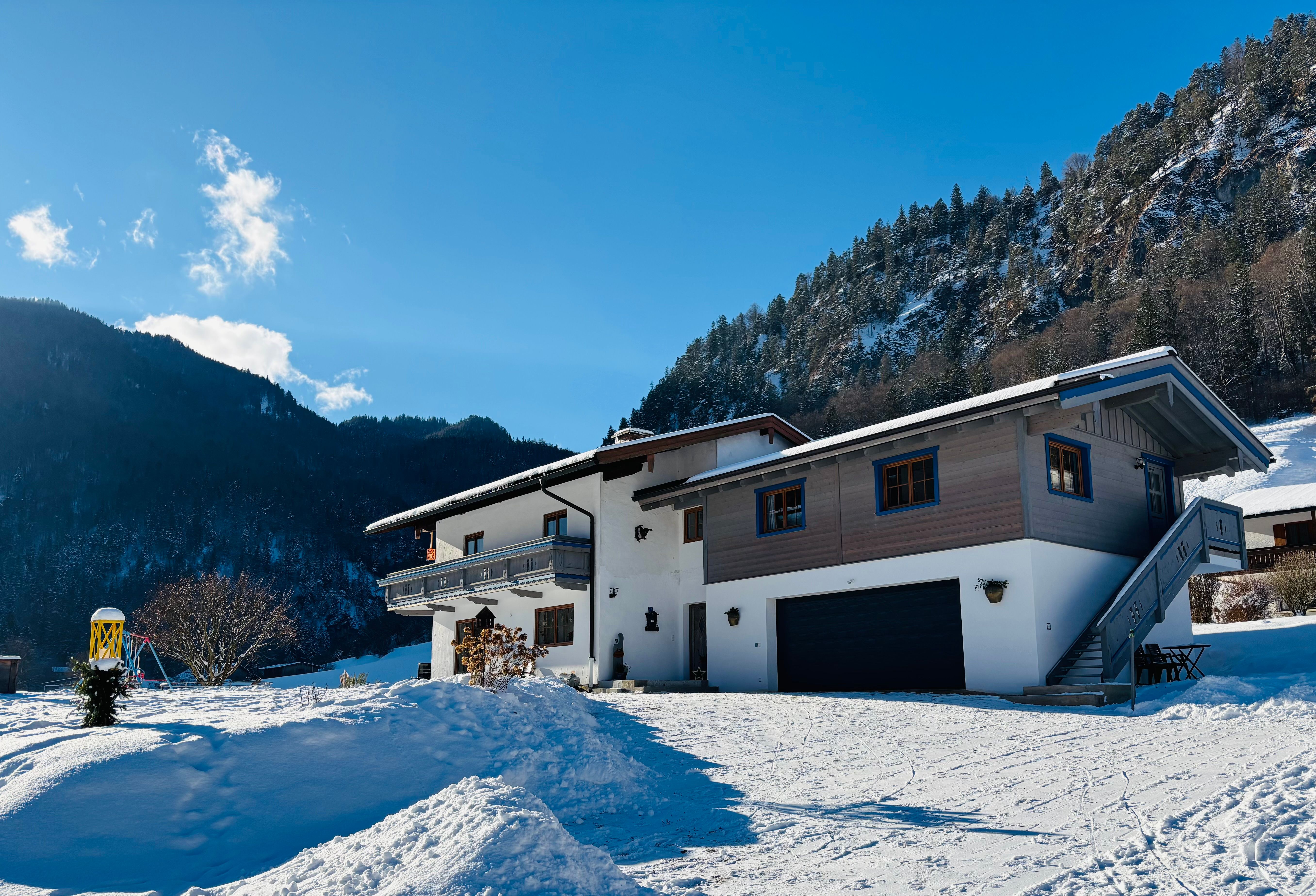 Unser Einfamilienhaus liegt in ruhiger Lage, umgeben von Wiese und nahe der Berchtesgadener Ache. Unser Haupthaus ist aus den 60er Jahren und wird seit 2021 von uns kernsaniert. Die Ferienwohnung befindet sich im neu errichteten Anbau. Wir bitten um Verständnis - die zur FeWo zugehörige Terrasse ist noch in Entstehung. Sie kann jedoch trotzdem genutzt werden. Sitzgelegenheiten sowie Sonnenliegen sind vorhanden. Außerdem gibt es einen großzügigen Garten, der teilweise mitgenutzt werden kann.