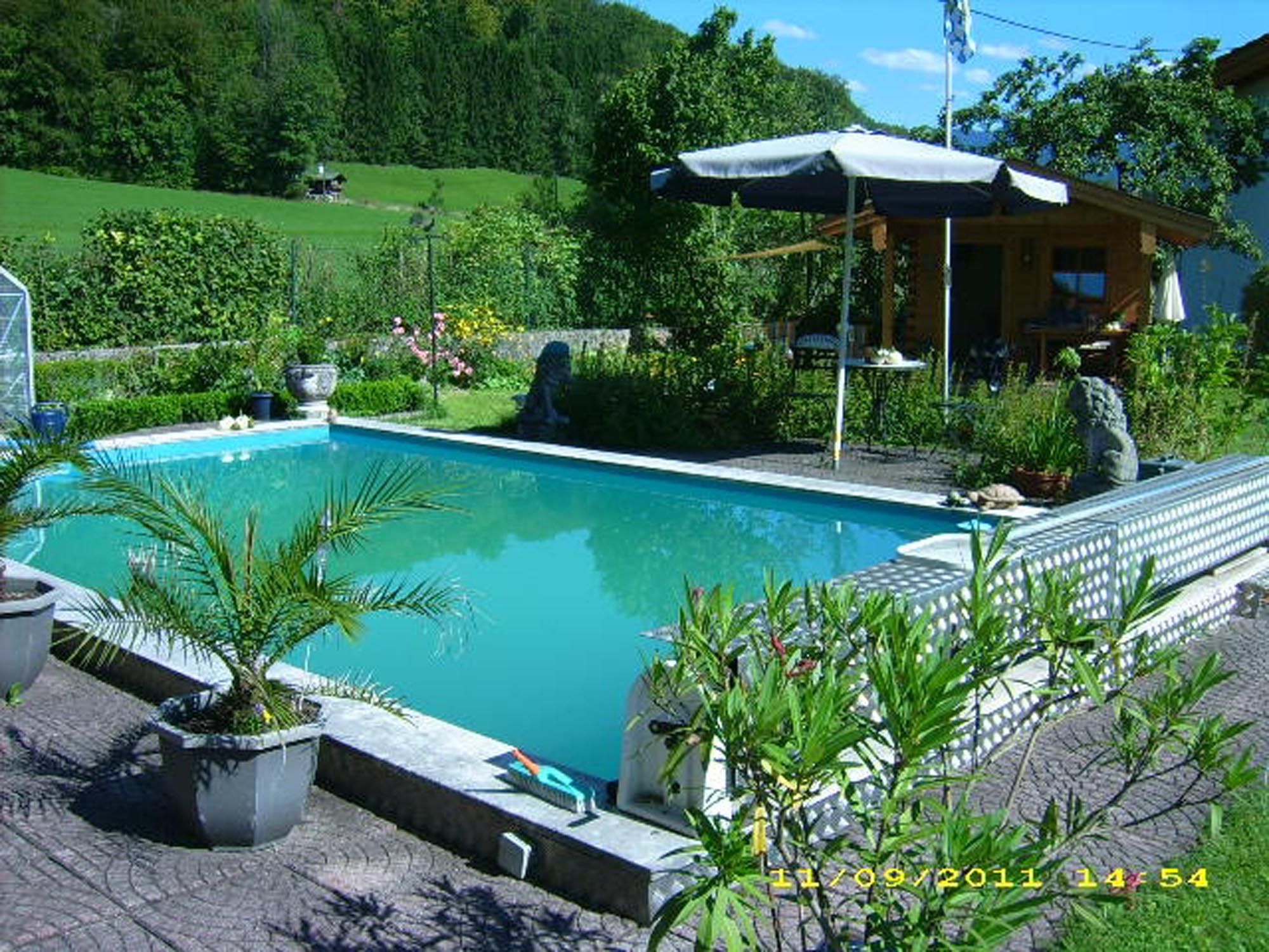 Entdecken Sie das Försterhaus, eine ruhige Unterkunft mit Garten und Pool, nahe dem Ortszentrum und mit Blick auf den Watzmann. Hunde sind willkommen.
