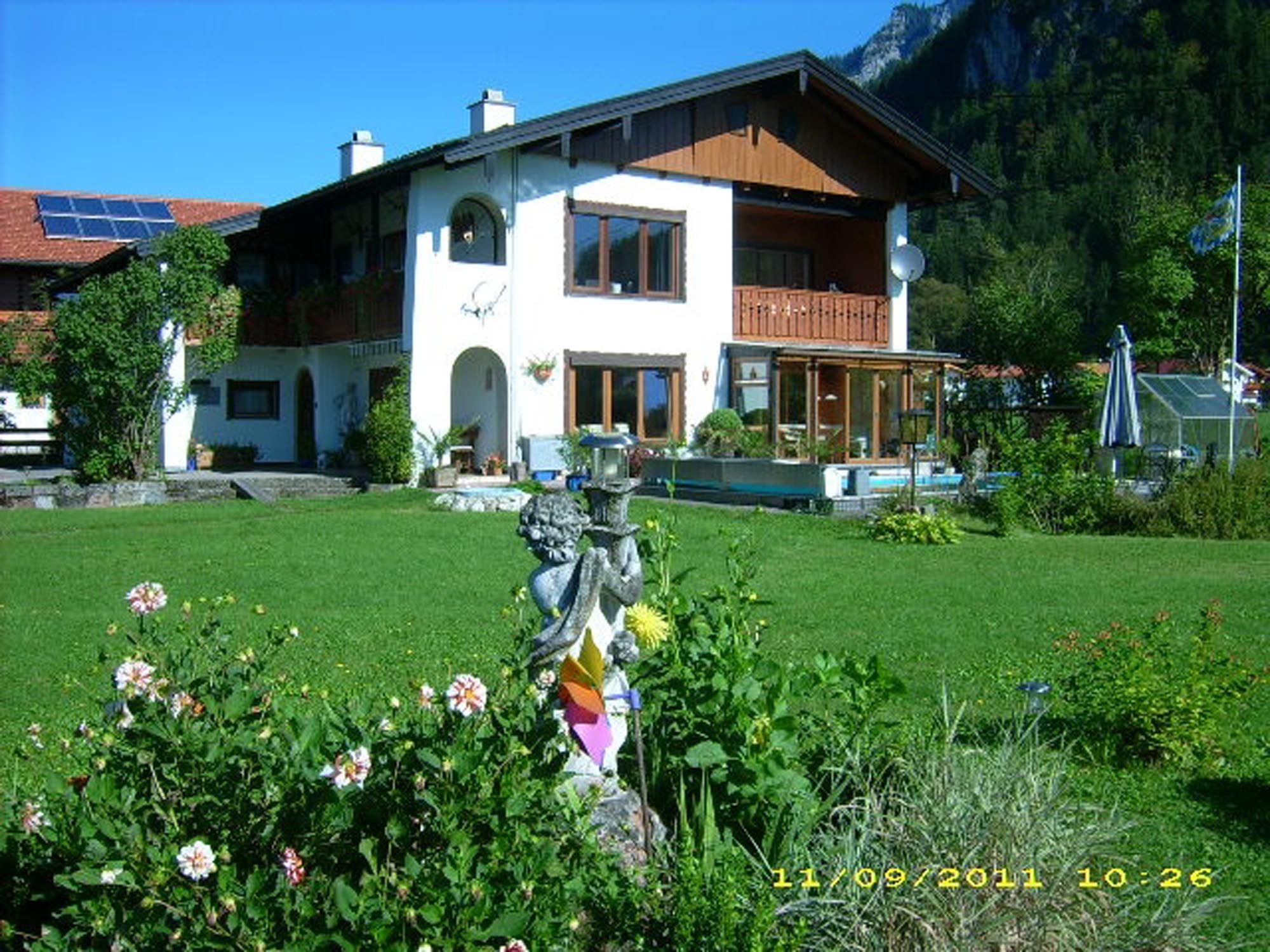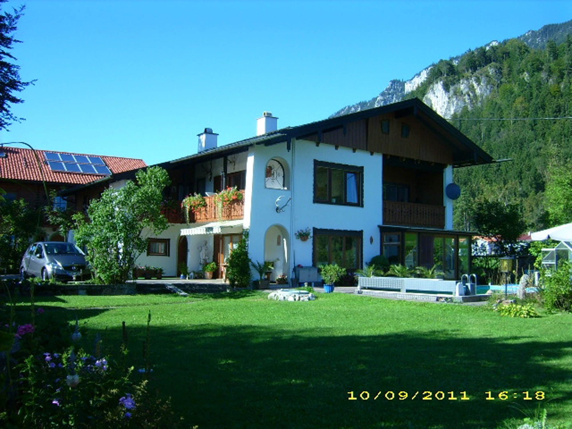 Erholen Sie sich im Försterhaus in ruhiger und zentraler Lage. Das Ortszentrum, Bahnhof und Bushaltestelle sind in 5 Gehminuten zu erreichen, ebenso Restaurants, Einkaufsmöglichkeiten, Kurarzt und Massagepraxis. Der Garten und ein Swimmingpool stehen Ihnen zur Verfügung mit herrlichem Blick auf den Watzmann. Wir vermieten die Ferienwohnungen ab 6 Übernachtungen. Hunde sind auf Anfrage erlaubt - der Preis pro Hund beträgt 5,00 Euro pro Übernachtung.