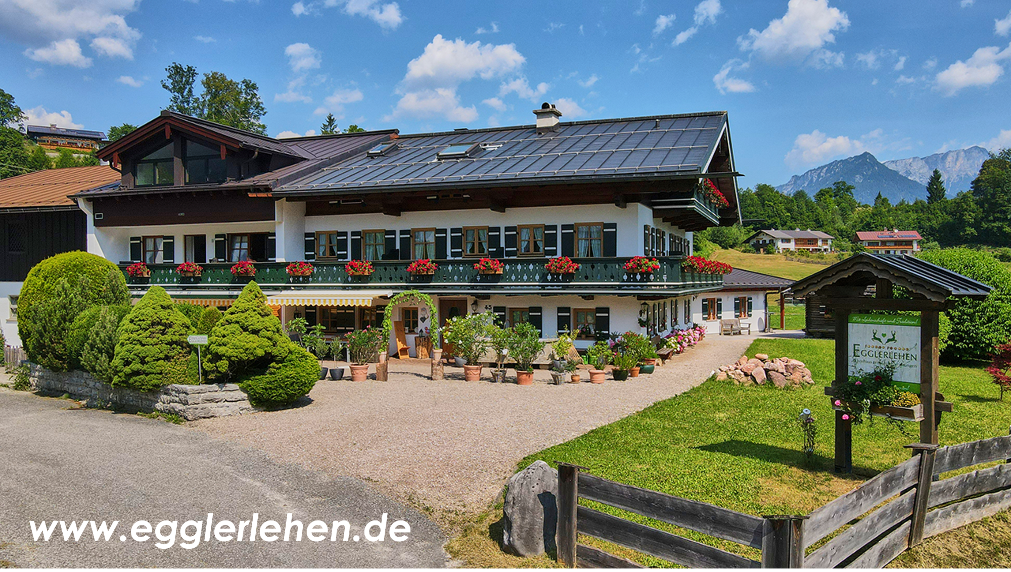 ...das Egglerlehen, dessen Geschichte bis ins Jahr 1389 zurückreicht, liegt im Herzen von Schönau am Königssee. Ein wundervoller Ort inmitten einer einmaligen Landschaft! Genießen Sie Ihren wohlverdienten Urlaub im EGGLERLEHEN****! Der Komfort und die familiäre Atmosphäre im Gästehaus oder die Freiheit der Ferienwohnungen.... gestalten Sie Ihren Traumurlaub selbst! Erholen Sie sich in unserem neuerbauten Gästehaus in sonniger, zentraler Lage mit traumhafter Bergkulisse! Die wunderbare Aussicht weckt Ihre Lust zum Wandern jeden Tag aufs Neue! Lassen Sie Ihr Auto stehen! Unser Haus liegt am Fußweg zum Königssee und ist ein idealer Ausgangspunkt für Ihre herrlichen Ausflüge und ausgiebige Wanderungen. Sie amüsieren sich im wenige Minuten entfernten Haus des Gastes bei Vorträgen, Gästeinformation und Zeitungen aus Ihrer Heimat liegen dort ebenfalls für Sie bereit. Im Umkreis von 1km finden Sie zahlreiche Gaststätten, Biergärten und Geschäfte. Der Bahnhof Berchtesgaden ist nur 2 km entfernt und die Bushaltestelle, von der aus sie zu allen Ausflugszielen fahren können, ist nur 2 Minuten fussläufig vom Egglerlehen entfernt. Herzlich Willkommen im EGGLERLEHEN****!! www.egglerlehen.de