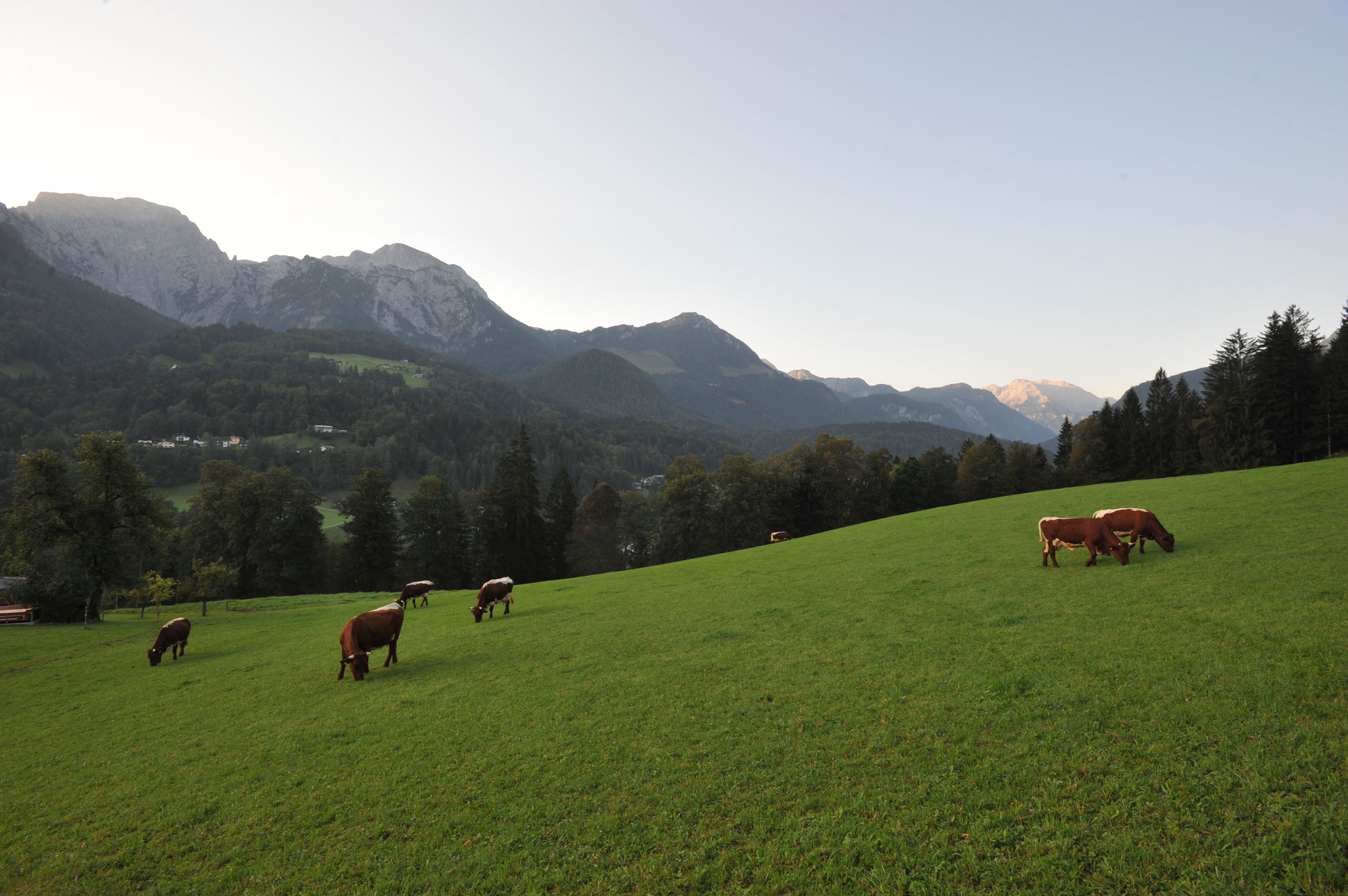 Unser BIO-Bauenhof liegt in schöner Alleinlage mit herrlichen Bergblick auf Watzmann, Hoher Göll und Jenner.