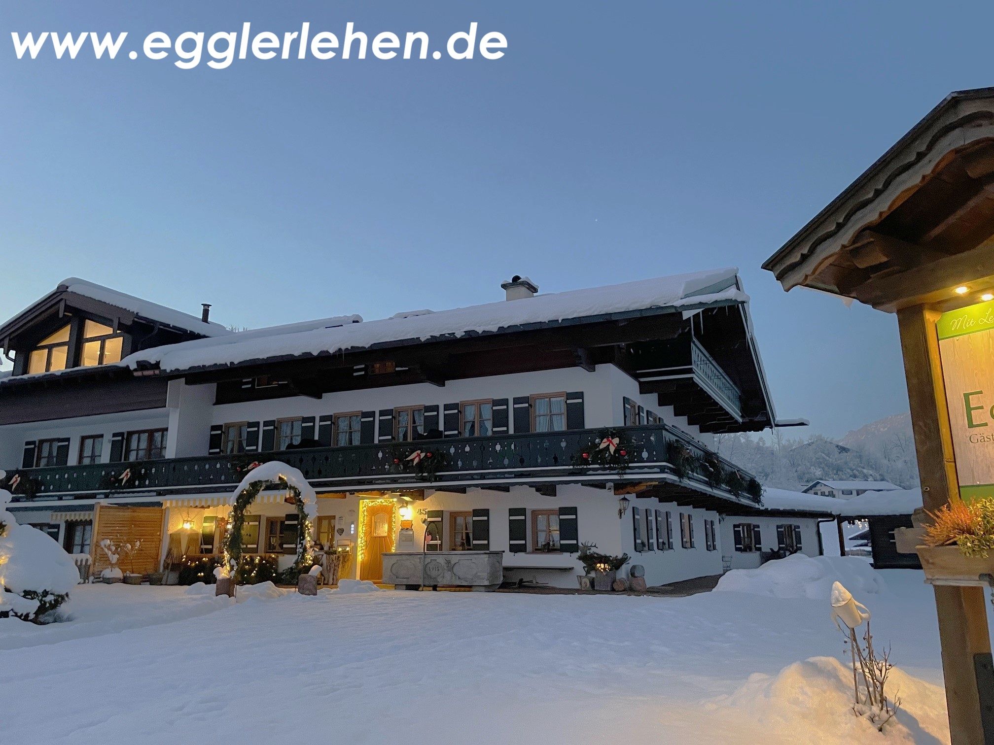 ...das Egglerlehen, dessen Geschichte bis ins Jahr 1389 zurückreicht, liegt im Herzen von Schönau am Königssee. Ein wundervoller Ort inmitten einer einmaligen Landschaft! Genießen Sie Ihren wohlverdienten Urlaub im EGGLERLEHEN****! Der Komfort und die familiäre Atmosphäre im Gästehaus oder die Freiheit der Ferienwohnungen.... gestalten Sie Ihren Traumurlaub selbst! Erholen Sie sich in unserem neuerbauten Gästehaus in sonniger, zentraler Lage mit traumhafter Bergkulisse! Die wunderbare Aussicht weckt Ihre Lust zum Wandern jeden Tag aufs Neue! Lassen Sie Ihr Auto stehen! Unser Haus liegt am Fußweg zum Königssee und ist ein idealer Ausgangspunkt für Ihre herrlichen Ausflüge und ausgiebige Wanderungen. Sie amüsieren sich im wenige Minuten entfernten Haus des Gastes bei Vorträgen, Gästeinformation und Zeitungen aus Ihrer Heimat liegen dort ebenfalls für Sie bereit. Im Umkreis von 1km finden Sie zahlreiche Gaststätten, Biergärten und Geschäfte. Der Bahnhof Berchtesgaden ist nur 2 km entfernt und die Bushaltestelle, von der aus sie zu allen Ausflugszielen fahren können, ist nur 2 Minuten fussläufig vom Egglerlehen entfernt. Herzlich Willkommen im EGGLERLEHEN****!! www.egglerlehen.de