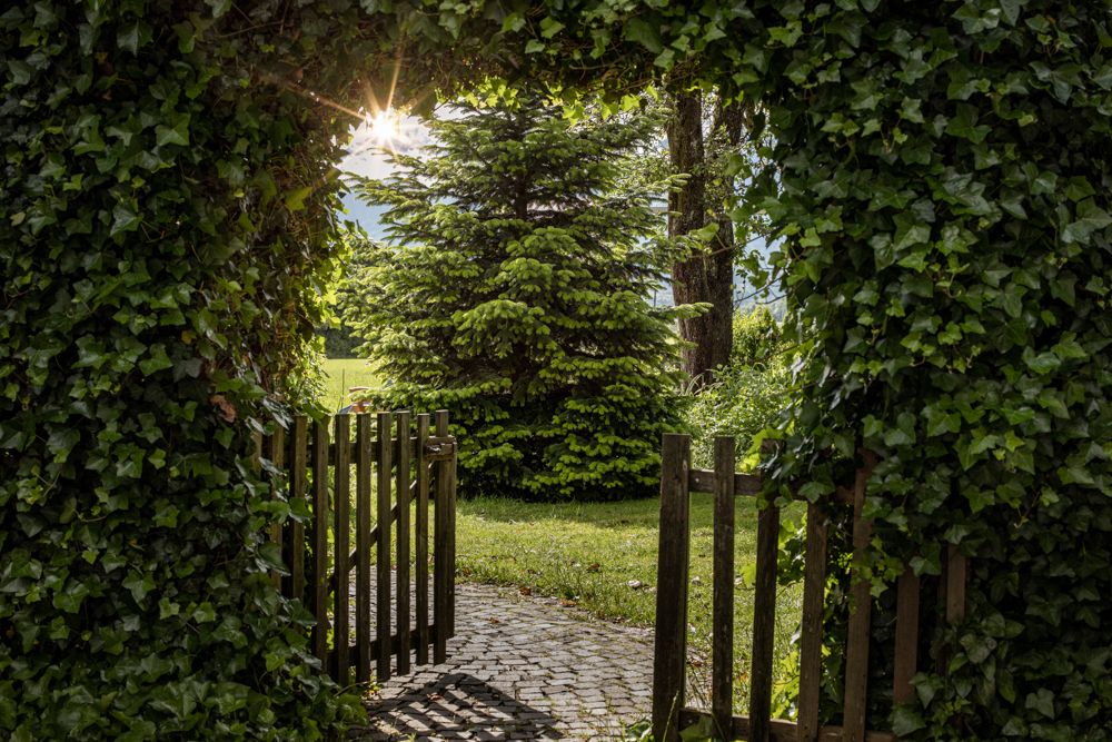 Unser Garten mit viel Grün und Blumen lädt zum entspannen und verweilen ein.