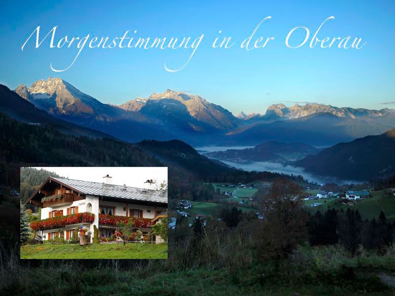 Unser idyllischer Bauernhof in sonniger ruhiger Lage mit herrlichem Blick auf die Bergwelt liegt auf 900m Höhe oberhalb von Berchtesgaden in dem kleinen Ort Oberau. Es trennen uns ca. 10 Gehminuten zur österreichischen Grenze sowie zur nächsten Bushaltestelle oder der nächsten Einkaufsmöglichkeit. Alle unsere hellen und geräumigen Zimmer sind mit Balkon / Dusche und WC ausgestattet. Für die ganz Kleinen können wir gegebenenfalls auch ein Babybett zur Verfügung stellen. Im gemütlichen rustikalen Aufenthaltsraum mit Kachelofen servieren wir Ihnen ein reichhaltiges gesundes Frühstück. Bei Sonnenschein richten wir gerne auch auf unserer Terrasse an. Gästekühlschrank und Geschirrschrank sowie Grillmöglichkeiten stehen selbstverständlich zur Verfügung. In den warmen Monaten bietet sich das Wandern oder Klettern an sowie der nahe gelegene bekannte Königssee in all seiner Schönheit. Für den Winter haben wir in bester Lage die Skiabfahrt direkt am Haus. Auf unserem Hof leben mit uns noch Kühe, Pferde, Hasen, Hühner, Ziegen und Katzen. Wir sind ein sehr familienfreundliches Haus und freuen uns schon jetzt auf ihr kommen!