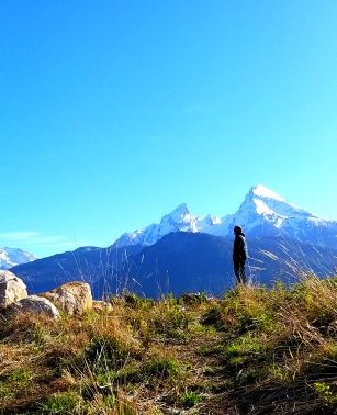 Gemütliche 4 Sterne-Ferienwohnung für 1 - 2 Personen, 45 m². Unser Haus liegt am Rande des Ortes Bischofswiesen in sonniger, ruhiger Lage mit herrlichem Blick auf den Watzmann und die Berchtesgadener Berge. Unser Haus ist ein idealer Ausgangspunkt im Sommer wie im Winter für Wanderungen und Skifahren und zu allen Attraktionen des Berchtesgadener Landes. Wir freuen uns auf Sie!