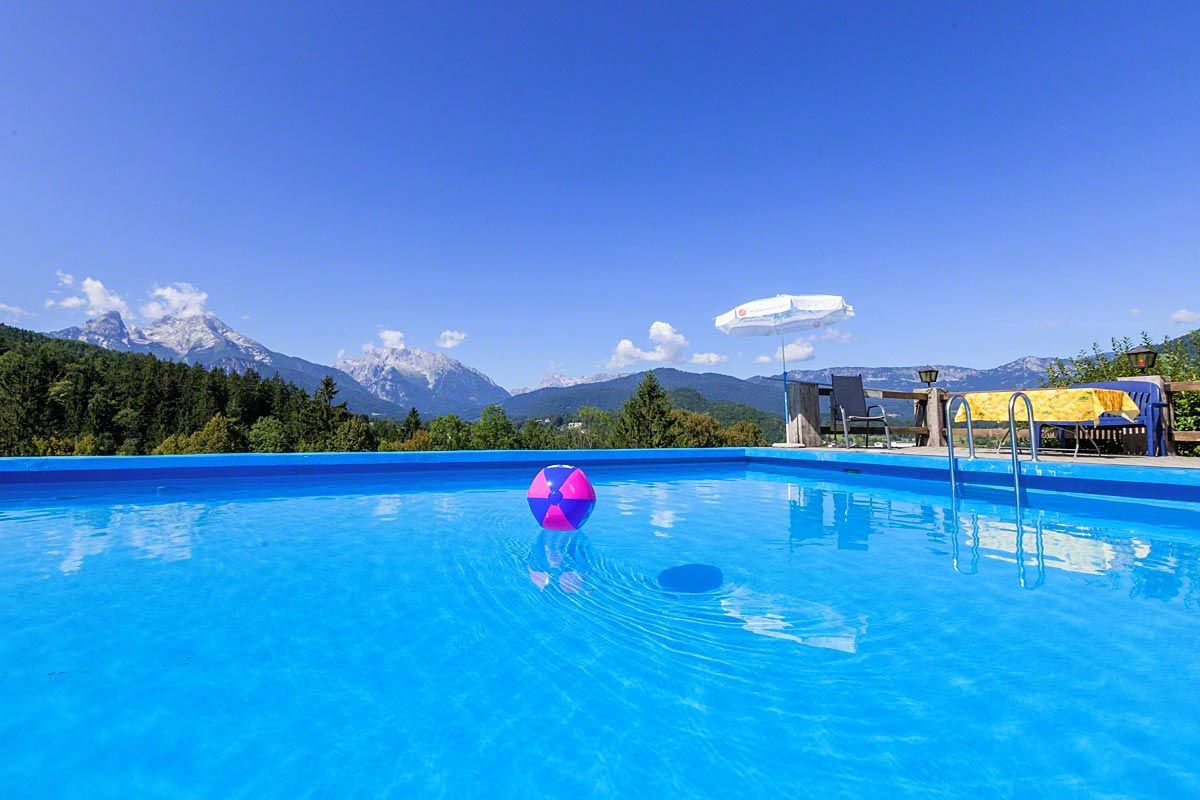 Entdecken Sie das Haus Kederlehen in Berchtesgaden, ein idyllisches Refugium mit atemberaubendem Bergpanorama, komfortablen Zimmern und einem solarbeheizten Außenpool.