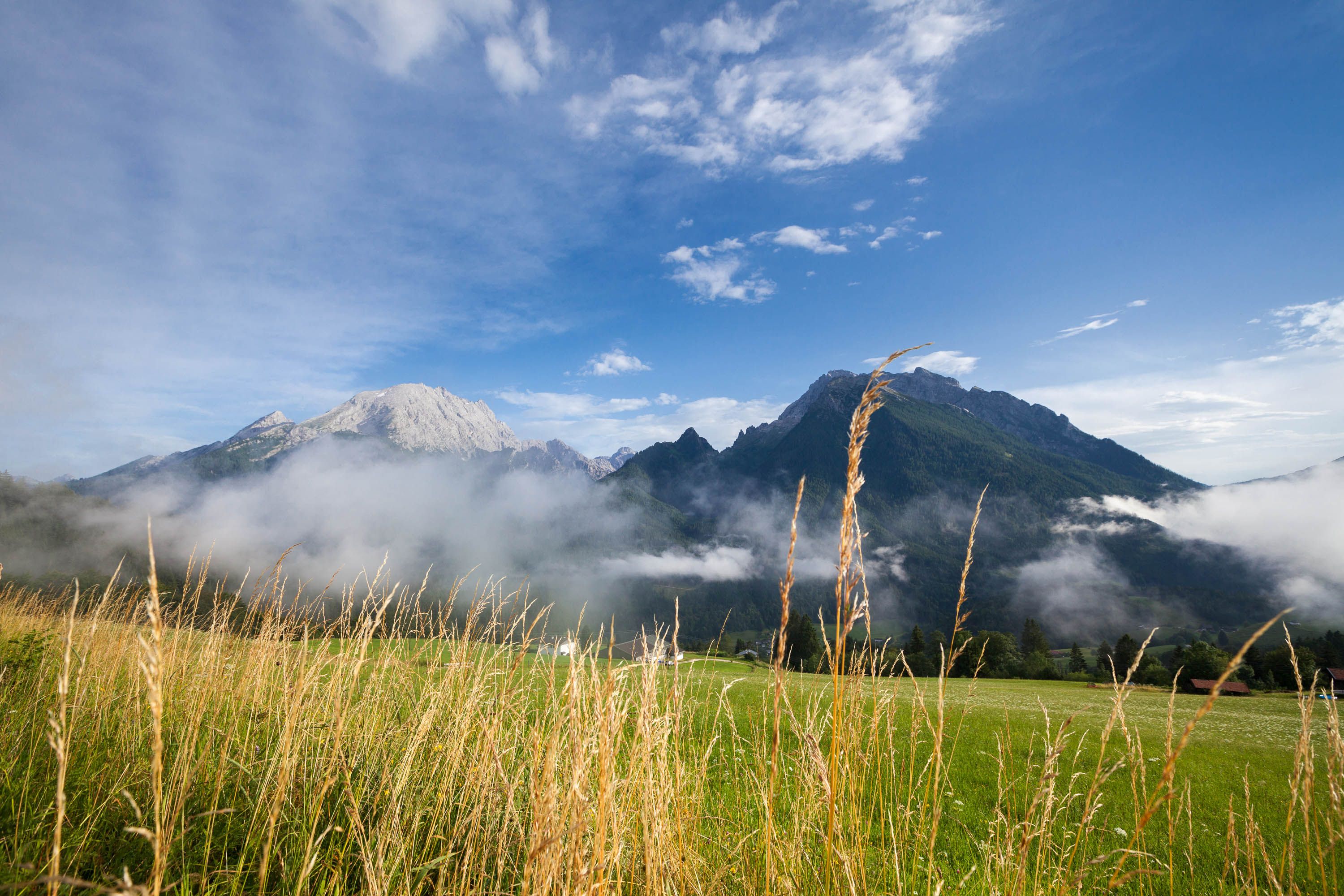 Entdecken Sie die idyllische Haus der Berge Ferienwohnung auf 1100 m Höhe, umgeben von Wiesen und Wäldern, mit atemberaubendem Blick auf die Ramsauer und Berchtesgadener Alpen.