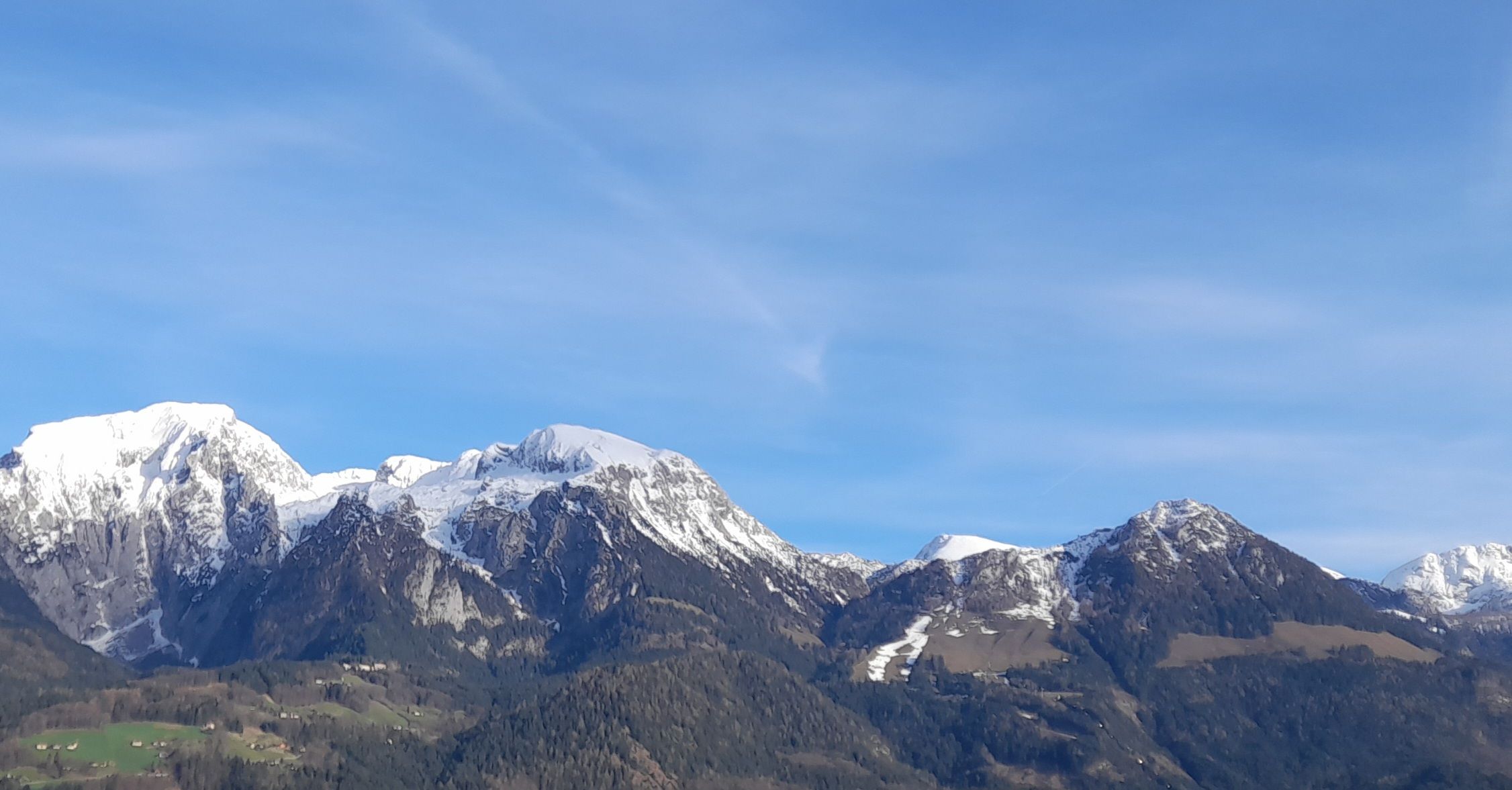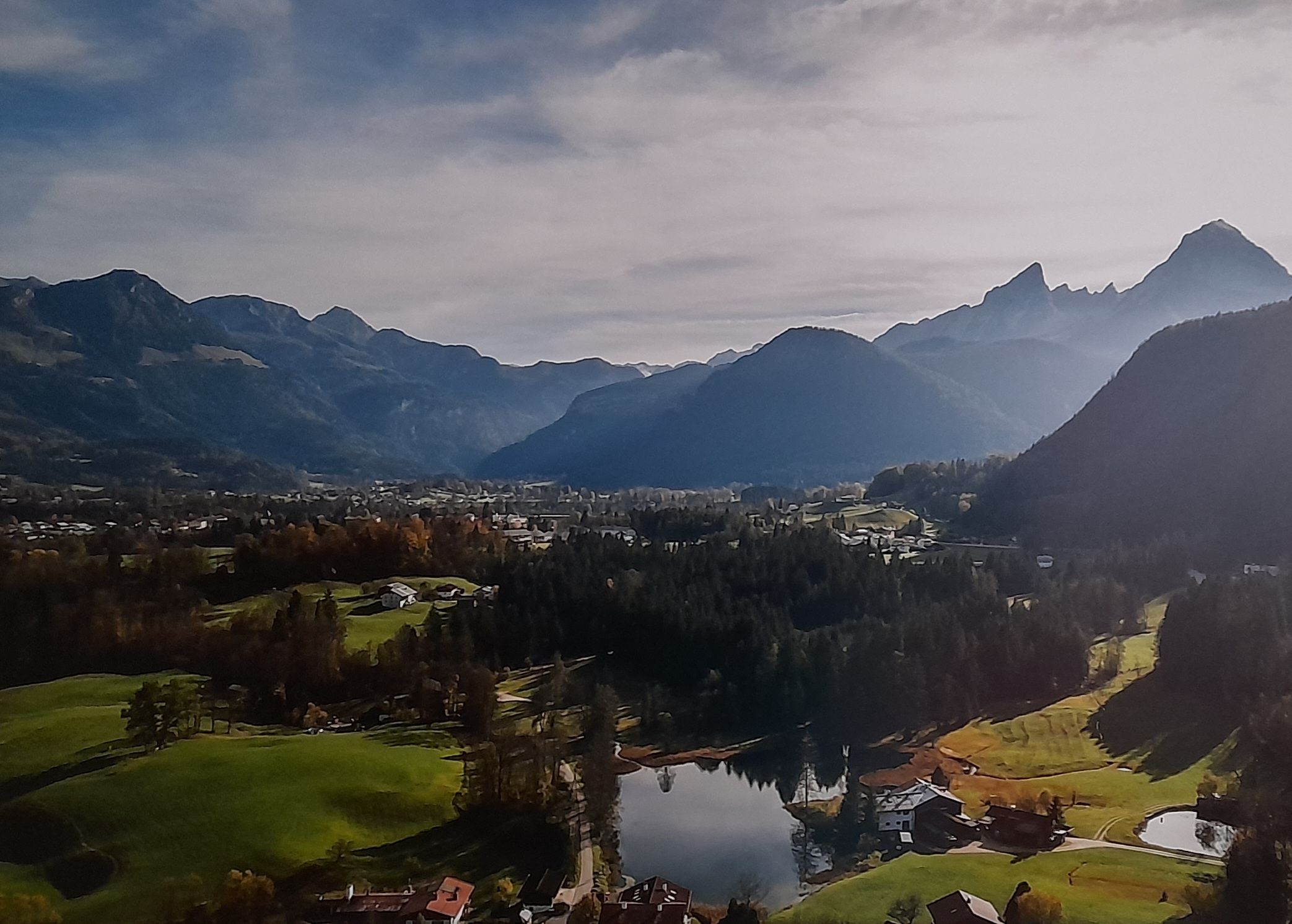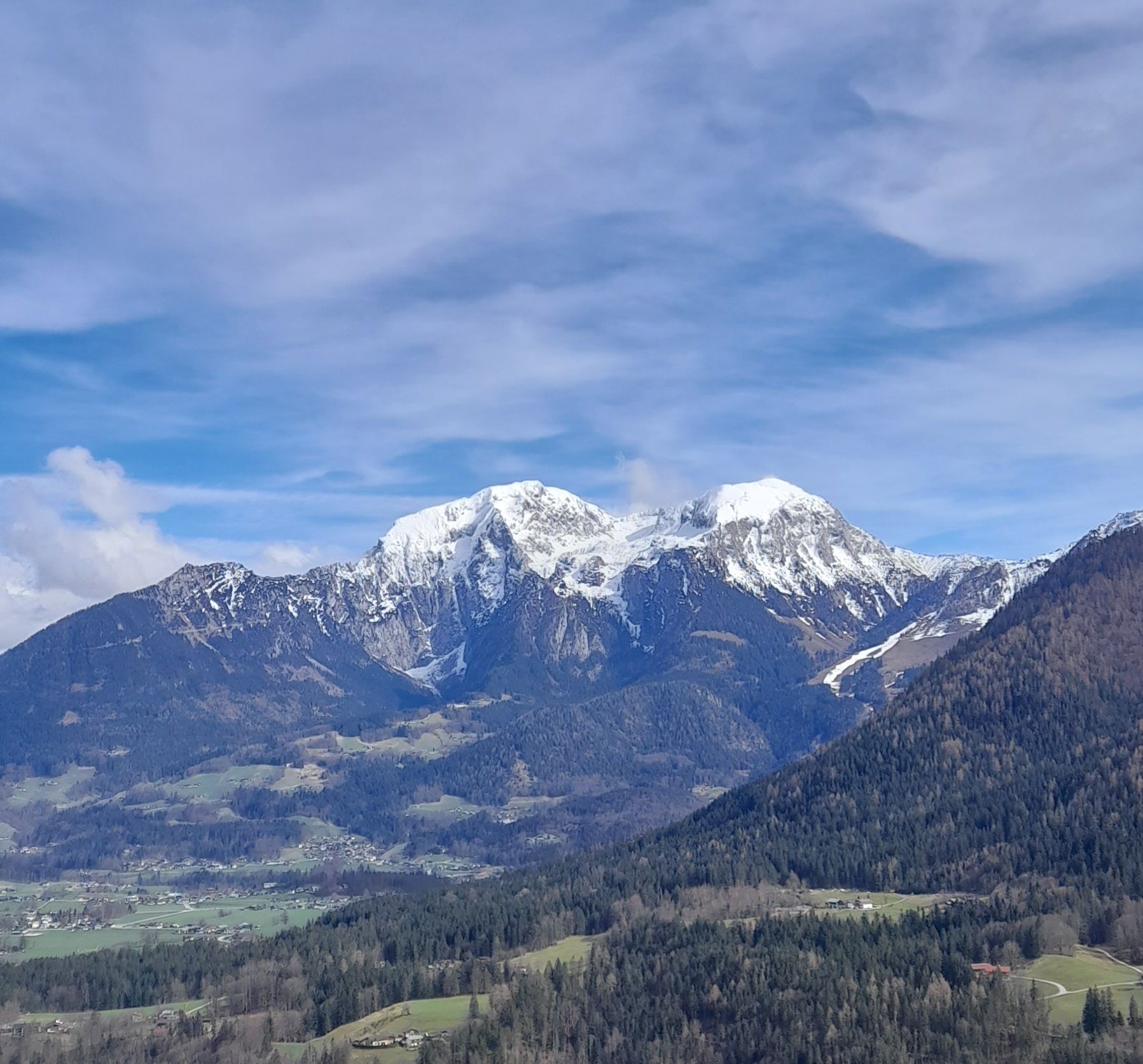 Von hier aus hat man einen wunderbaren Blick auf die umliegenden Berge Kehlstein, Hoher Göll, Hohes Brett, Jenner und den Watzmann.
