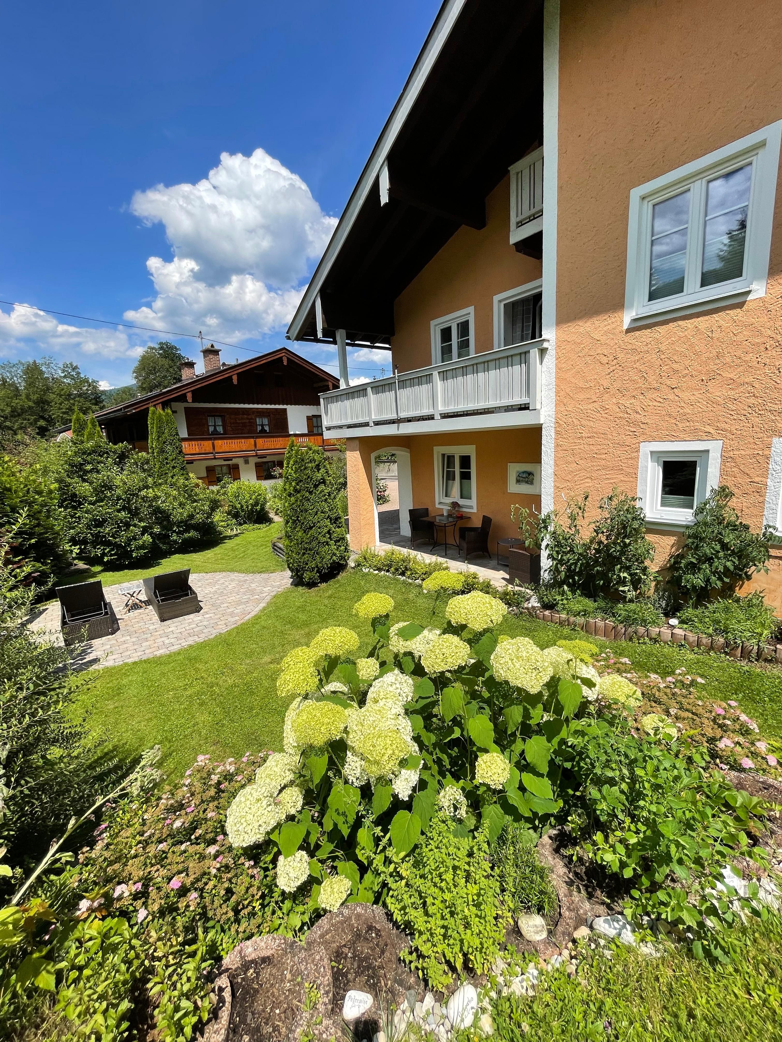 Herzlich Willkommen in unserem Haus im heilklimatischem Kurort Schönau am Königssee! Nur 1,2 km vom malerischen Königssee entfernt haben wir mit viel Liebe zum Detail ein gemütliches Urlaubszuhause geschaffen. Unser Haus in ruhiger, sonniger Lage lädt mit liebevoll möblierter Terrasse und Liegewiese zu einem erholsamen Urlaub ein. Unsere Gäste können sich im Kräutergarten bedienen. Das Berchtesgadener Tal ist Ausgangspunkt unzähliger Wanderungen in und um den Nationalpark Berchtesgaden. Für jedes Alter und jede Kondition sind wunderbare, erlebnisreiche Ausflüge, Spaziergänge oder Bergtouren möglich. Tauchen Sie ein in die entspannende und artenreiche Natur- und Tierwelt unserer Region. Ganz in der Nähe finden Sie zahlreiche Gaststätten, Einkaufsmöglichkeiten, 3 Bushaltestellen, Kneippanlagen, Gradierwerk, Gemeindebücherei, Bank und Post. Für aktive Urlauber liegt der Nationalpark Berchtesgaden sozusagen vor der Haustüre. Bei uns können Sie getrost auf Ihr Auto verzichten.