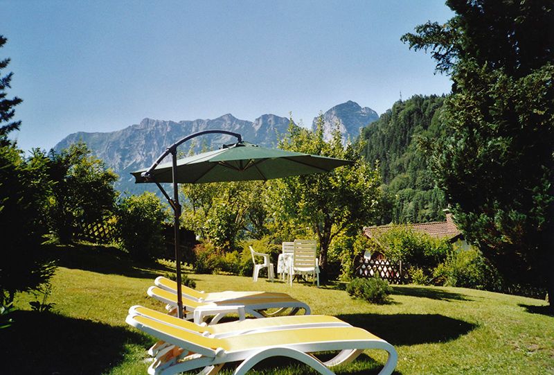 Entdecken Sie die Ferienwohnungen von Haus Öfenbichl, ein idyllisches Domizil am Waldrand mit atemberaubender Bergaussicht und parkähnlichem Garten.