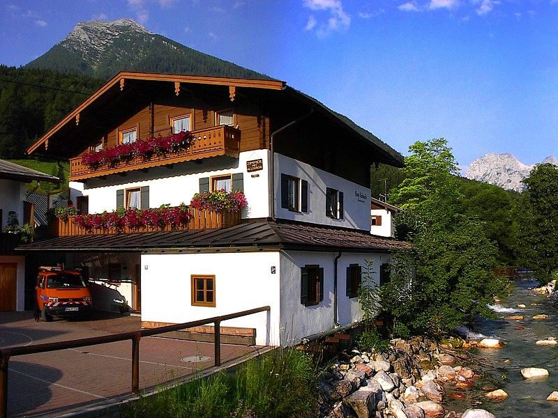 Entdecken Sie das charmante Haus Schmiede, zentral gelegen neben der Ramsauer Kirche, mit nahegelegener Bushaltestelle und eigenem Parkplatz.