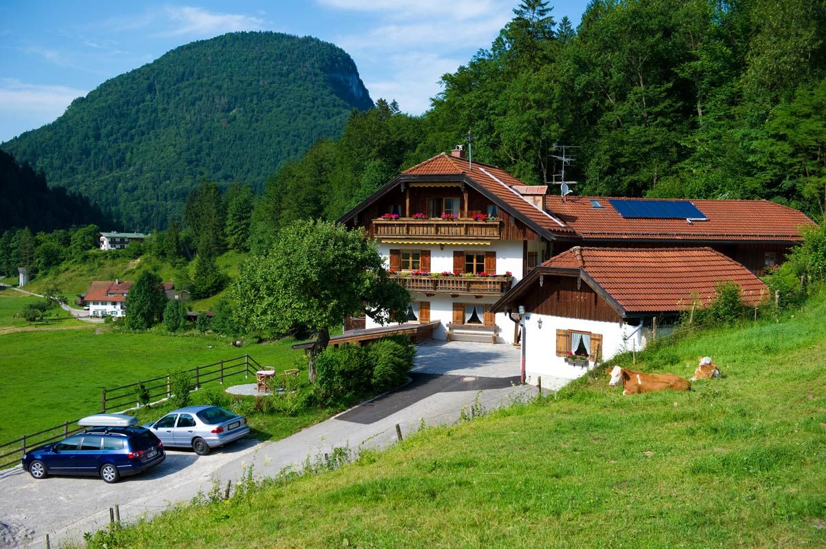 Entdecken Sie das Haus Vogelrast, ein ruhiges Refugium in den Berchtesgadener Bergen, umgeben von Wiesen, mit regionaler Küche und Spielplatz in der Nähe.