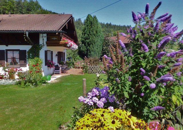 Sie finden das gepflegte, sonnige Einfamilienhaus am Stoißberg in 650 m Höhe, mit herrlichem Panoramablick auf die bayerischen und österreichischen Berge. In der gemütlichen und liebevoll eingerichteten, 58 qm großen Ferienwohnung ist genügend Platz für drei Erwachsene. Außerdem steht Ihnen ein großer Garten mit Liegewiese, sowie eine hauseigene Kneippanlage zur Verfügung. Der Parkplatz ist direkt beim Haus. Vermietung vom 1. Mai bis 31. Oktober. Ich freue mich auf Ihr Kommen!