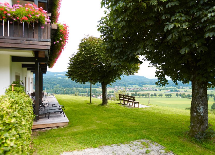 Entdecken Sie das Gästehaus 'Hölbinger Alm' am Waldrand mit Panoramablick ins Salzburger Tal und auf die Berchtesgadener Gebirgswelt, inklusive barrierefreier Wohnung.
