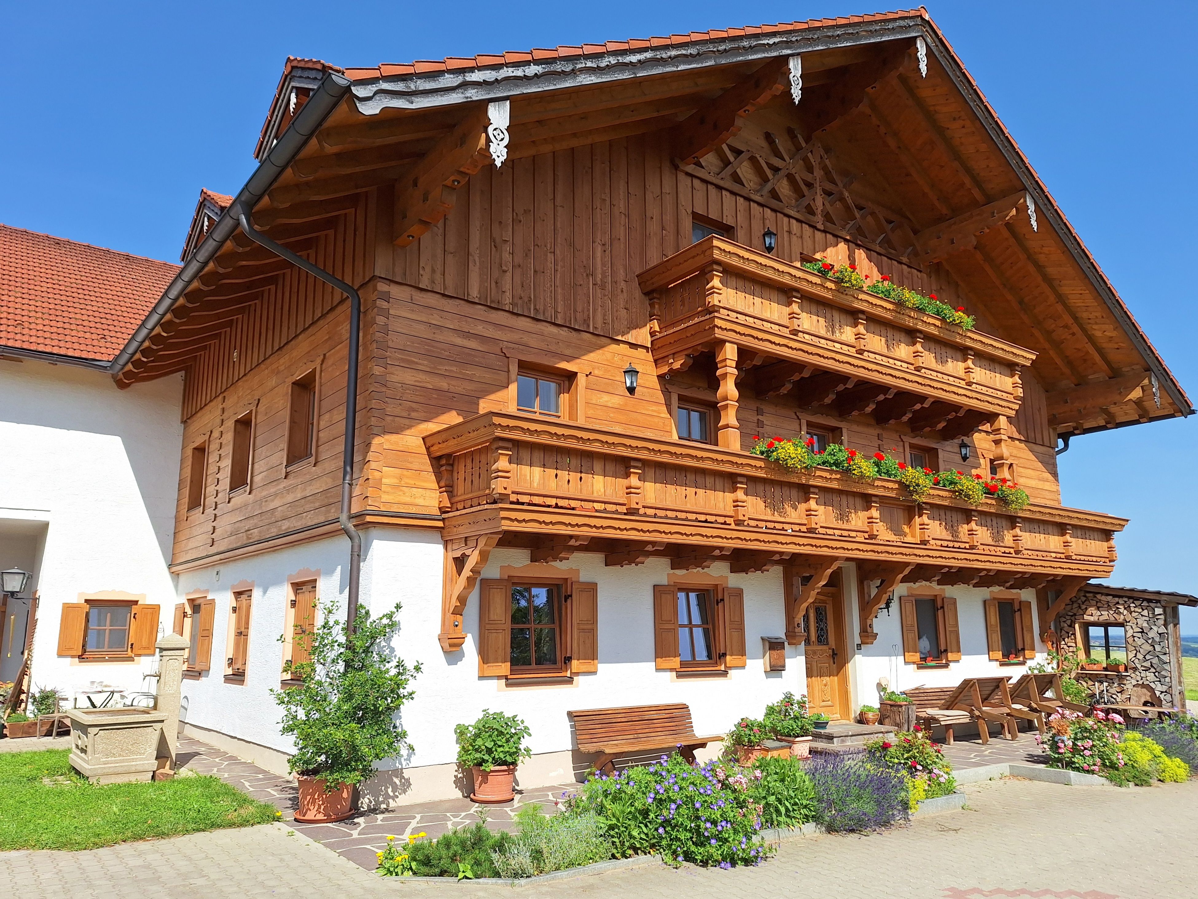 Unser Hof liegt in idyller Einzellage umringt von saftigen Wiesen u. wunderbaren Bergpanorama mit Salzburgblick. Bei uns können Sie die Natur hautnah erleben u. einfach die Ruhe genießen. Während Ihre Kinder gerne beim Füttern der Kühe u. Kälbchen dabei sein dürfen, viele Fragen stellen u. nach getaner Arbeit die frischgemolkene Milch probieren können. Die Fütterung des Federvieh u. vor allem das Holen der Eier ist ein besonderes Erlebnis. Unsere Katzen u. Hasen freuen sich auf Ihre Streicheleinheiten. Weiters steht eine gr. Spielwiese mit Sandkasten, Riesenschaukel, Klettergerüst u. Fußballtor zur Verfügung. Unser ländliches Ambiente bietet 300 km ausgeschilderte Wanderwege. Die Möglichkeit des Bergwanderns, wofür wir viele wertvolle Tipps verraten, ist ebenso gegeben wie ein Badeaufenthalt am Waginger See (18 km) , wärmster See Bayerns oder den gepflegten Freibädern der Umgebung. Prospekte unzähliger Sehenswürdigkeiten finden Sie in der aktuellen Hofmappe. Besuchen Sie uns im Internet oder fordern Sie ein Hausprospekt an.