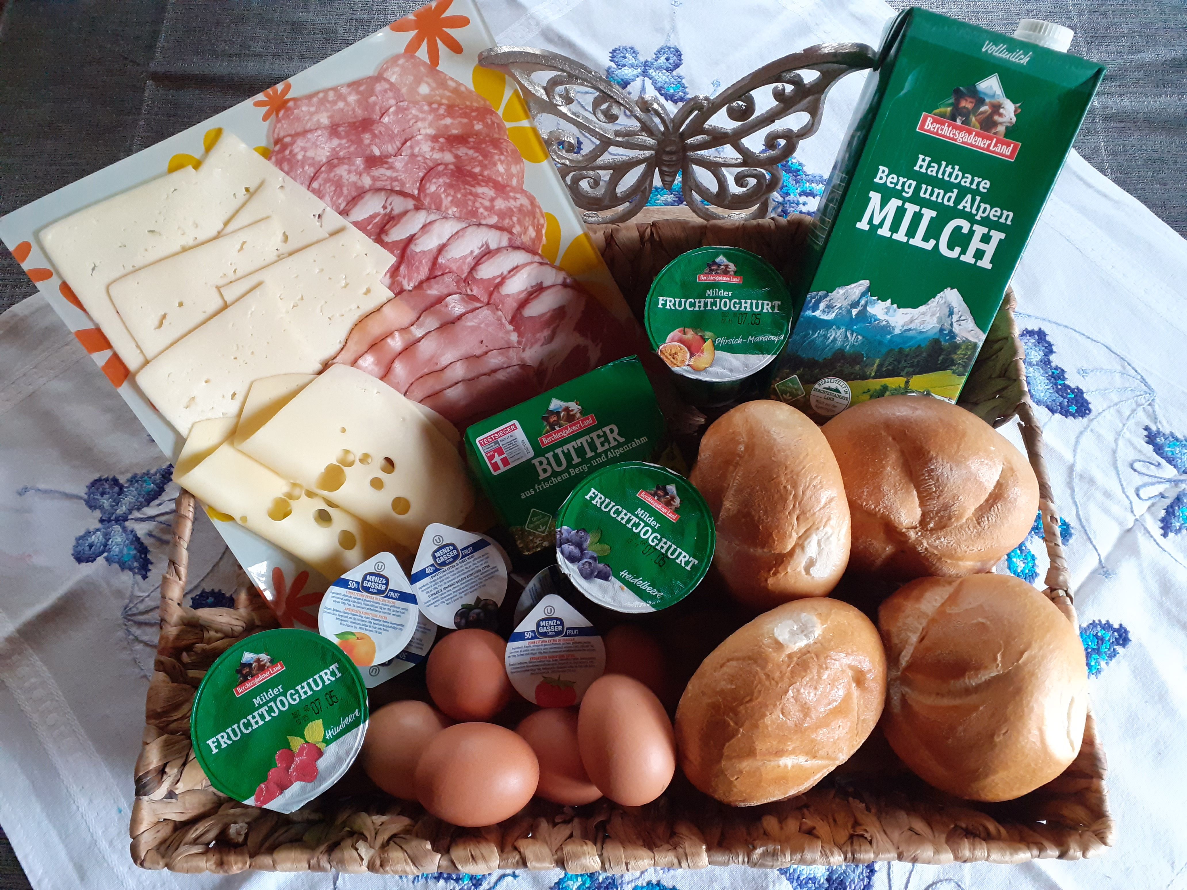 In der Fotogalerie finden Sie unser Frühstücksangebot. Dieser Frühstückskorb steht bereits bei der Anreise fertig im Kühlschrank für 25€ Aufpreis. Bitte kontaktieren Sie uns spätestens 3 Tage vor Anreise wenn Sie dieses Angebot war nehmen möchten.