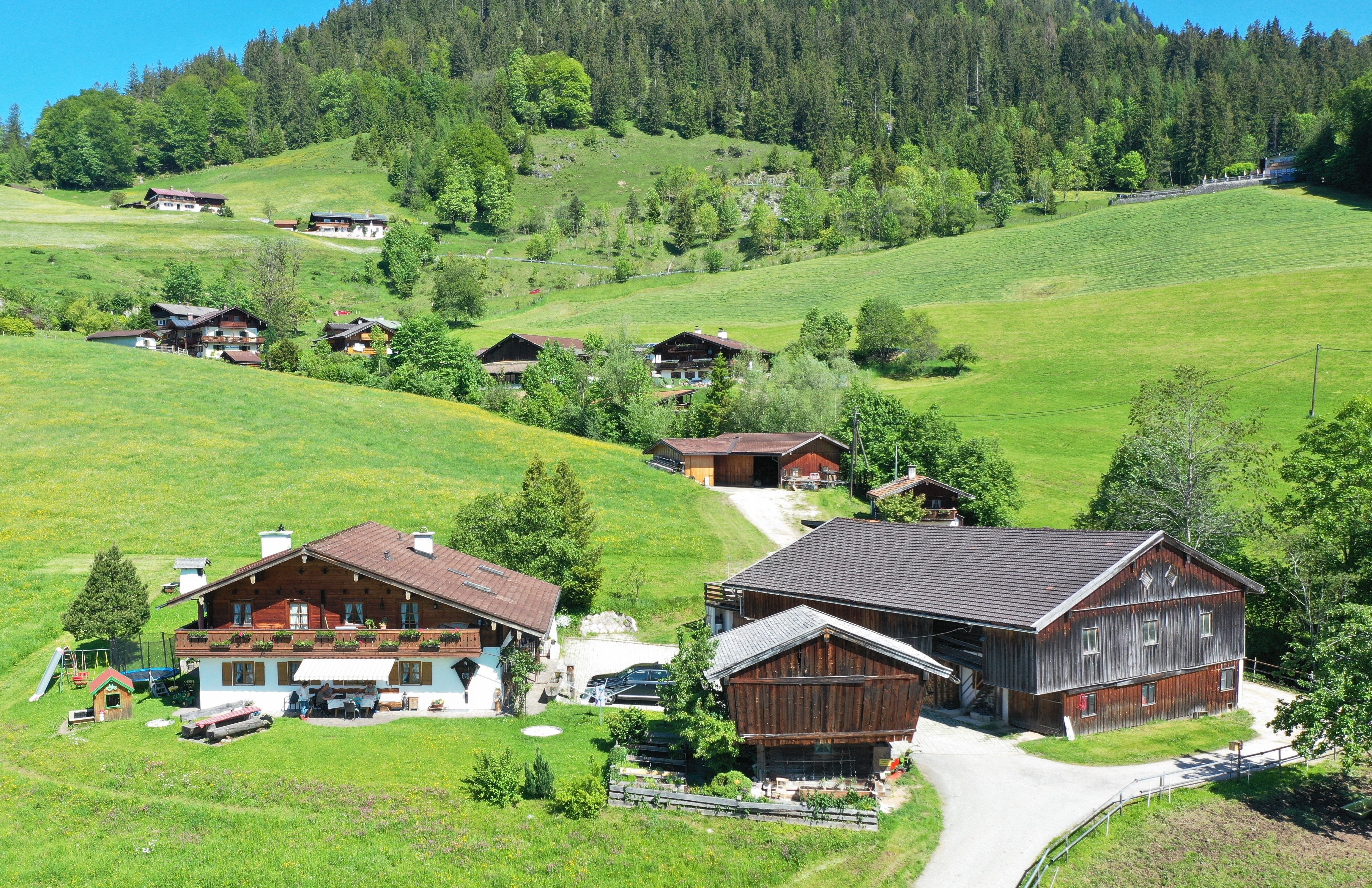 Unser Hof ist bereits seit Generationen in Familienbesitz. Wir leben, arbeiten und wachsen mit unseren Tieren und schaffen uns gemeinsam ein kleines Paradies. Ferienwohnung 2 und 3 befinden sich im 2024 neu gebauten Ferienhaus und bieten einen unvergesslichen Panoramablick der zum wandern und/oder einfach zum genießen einlädt. Sowohl auf dem Balkon als auch auf der Terrasse dieser Ferienwohnungen hat man einen herrlichen Blick über unseren Hof bis zum König Watzmann, den Steinberg, Hochkalter und die Reiter Alpe. Ein perfekter Ort um die Seele baumeln zu lassen und im Sommer die Gesellschaft von weidenden Rindern und Ziegen zu genießen. Ein Gefühl wie auf der Alm!! Natürlich bietet auch der Frühling, Herbst und Winter unvergesslich schöne Eindrücke.