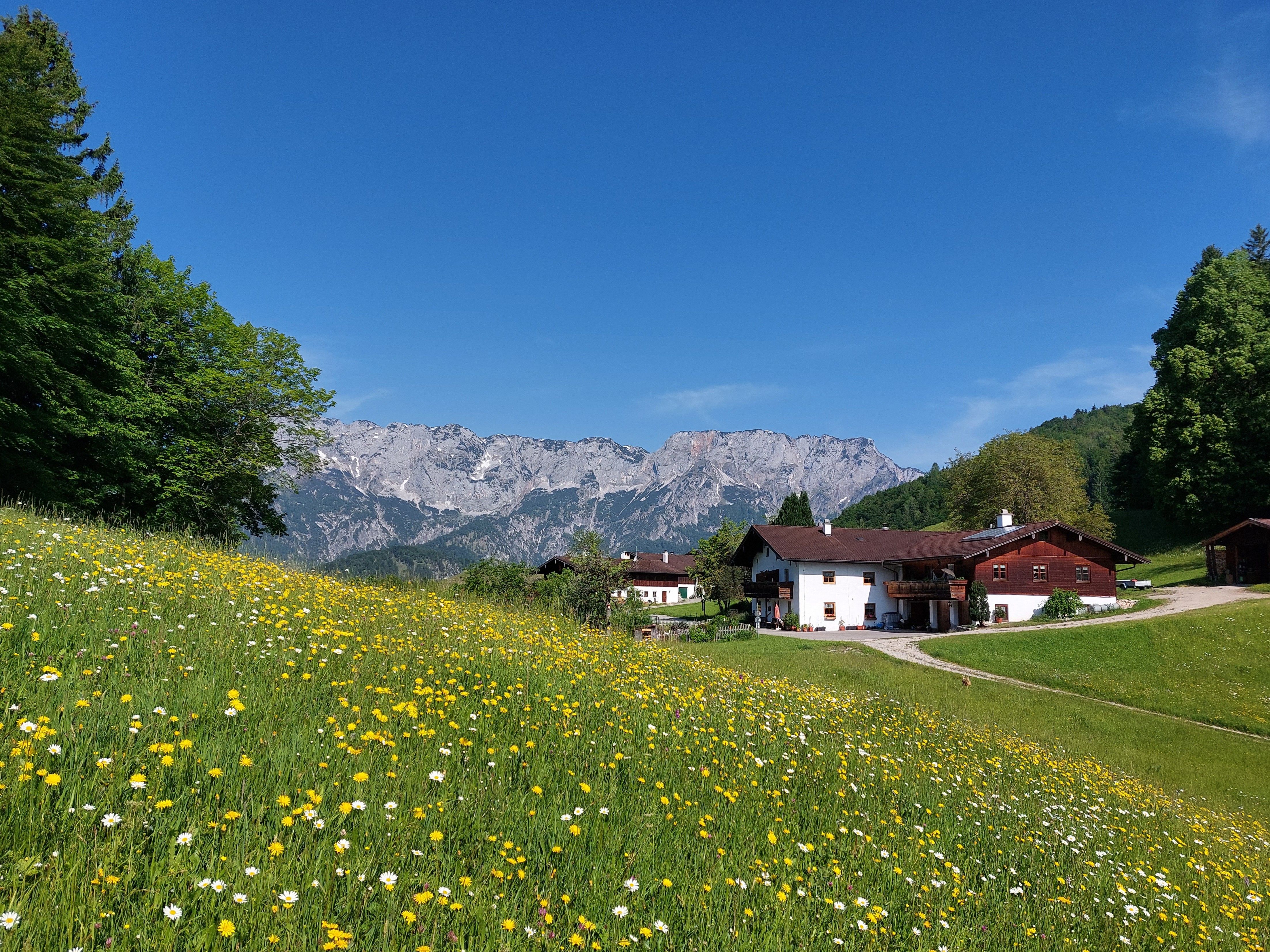 Unser Bergbauernhof befindet sich abseits vom Straßenverkehr in ruhiger, sonniger Lage auf etwa 800 m mit einem tollen Blick auf das Panorama der Berchtesgadener Berge. Wir betreiben eine kleine Landwirtschaft. Wir haben Kühe, Ziegen und Katzen auf unserem Hof. Unser Bauernhof bietet einen idealen Ausgangspunkt für schöne Ausflugsziele, Wanderungen oder Klettertouren in unmittelbarer Nähe des Nationalparks Berchtesgaden oder der Festspielstadt Salzburg. Die drei neu renovierten Doppelzimmer sind einfach, aber gemütlich eingerichtet. Wir bieten Ihnen ein abwechslungsreiches Frühstück. Bei uns erwartet Sie ein Mix aus bayrischer und thüringischer Gastlichkeit. Wir freuen uns auf Ihren Besuch!