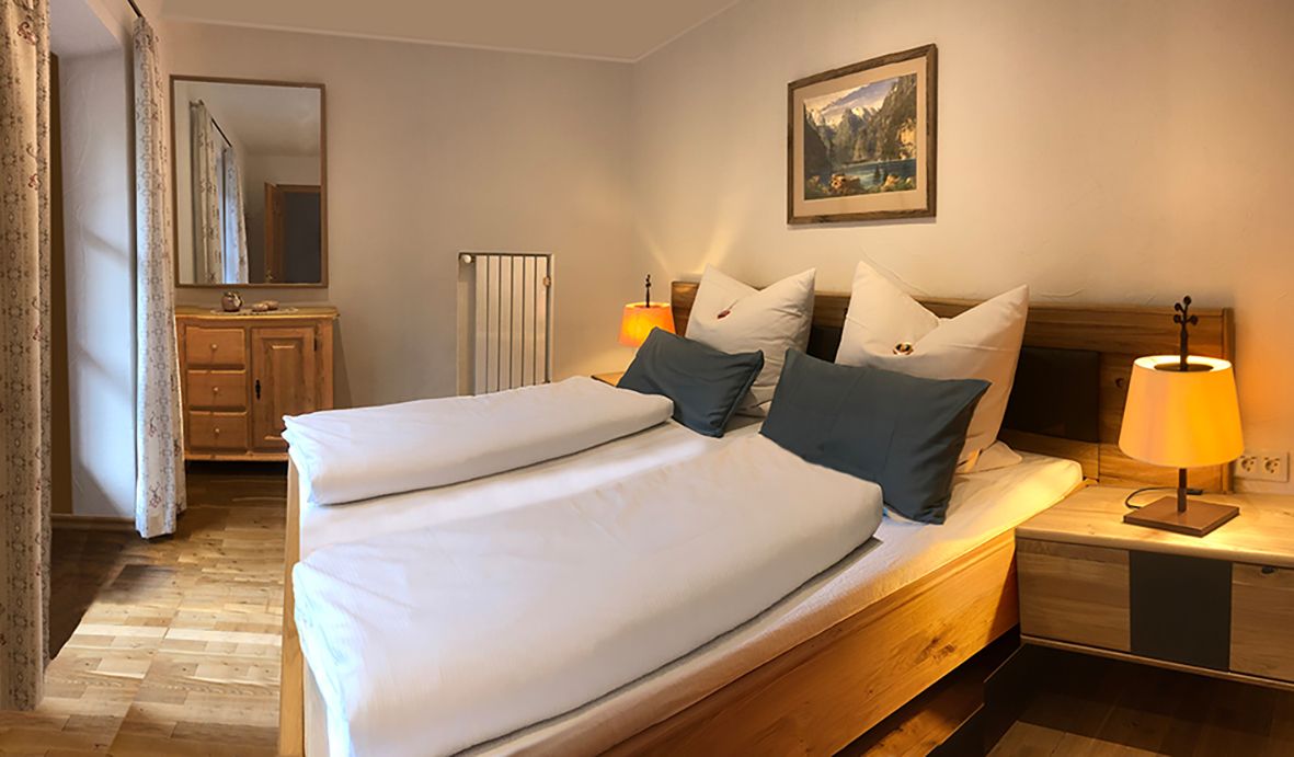 Unser Haus liegt am Ortsende von Ramsau, Richtung Berchtesgaden, zu Füßen des Watzmanns und Hochkalters, am Eingang zur Wimbachklamm. Es liegt auf einer kleinen Anhöhe inmitten grüner Wiesen, mit freiem Blick auf die umliegende Bergwelt.Ein idealer Ausgangspunkt für die schönsten Touren und Wanderungen im Nationalpark Berchtesgaden.