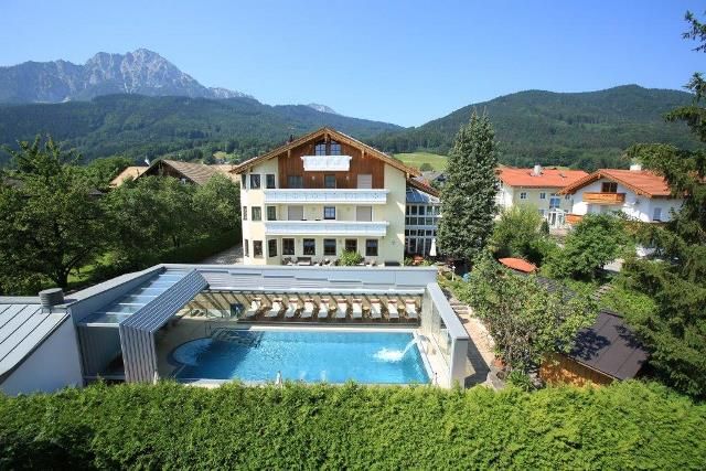 Romantik, Wellness & Natur pur…Wenige Kilometer von der österreichischen Grenze und Salzburg liegt das 4 Sterne Wellness- und Landhotel Prinz in dem kleinen idyllischen Luftkurort Anger- Ortsteil Aufham bei Bad Reichenhall. Das romantische, familiengeführte Hotel ist nur 10 Minuten von Bad Reichenhall und der Festspiel- und Mozartstadt Salzburg entfernt. Nach Berchtesgaden sind es nur 30 Minuten. Erleben Sie einen romantischen Wohlfühl und Kuschelurlaub oder einen Wellness- und Familienurlaub in den Bergen, mitten im Berchtesgadener-Land direkt vor den Toren Salzburgs! Frühstücksbuffet, der Wellnessbereich mit Schwimmbad und Parkplätze sind im Preis der Hotelzimmer inbegriffen. Bei Buchung einer Ferienwohnung im Landhaus Prinz, sind Zusatzleistungen jederzeit zu buchbar. Es gibt ein helles regionales Restaurant, dort wird den Gästen ein täglich wechselndes 4 Gänge Abendmenü angeboten. Im gemütlichen Almstüberl des Hotels, können die Gäste Ihre Urlaubstage in geselliger Runde ausklingen lassen. Zur weiteren Ausstattung gehören ein Innen-/Außenpool sowie ein Wellnessbereich und verschiedene zubuchbare Anwendungen.