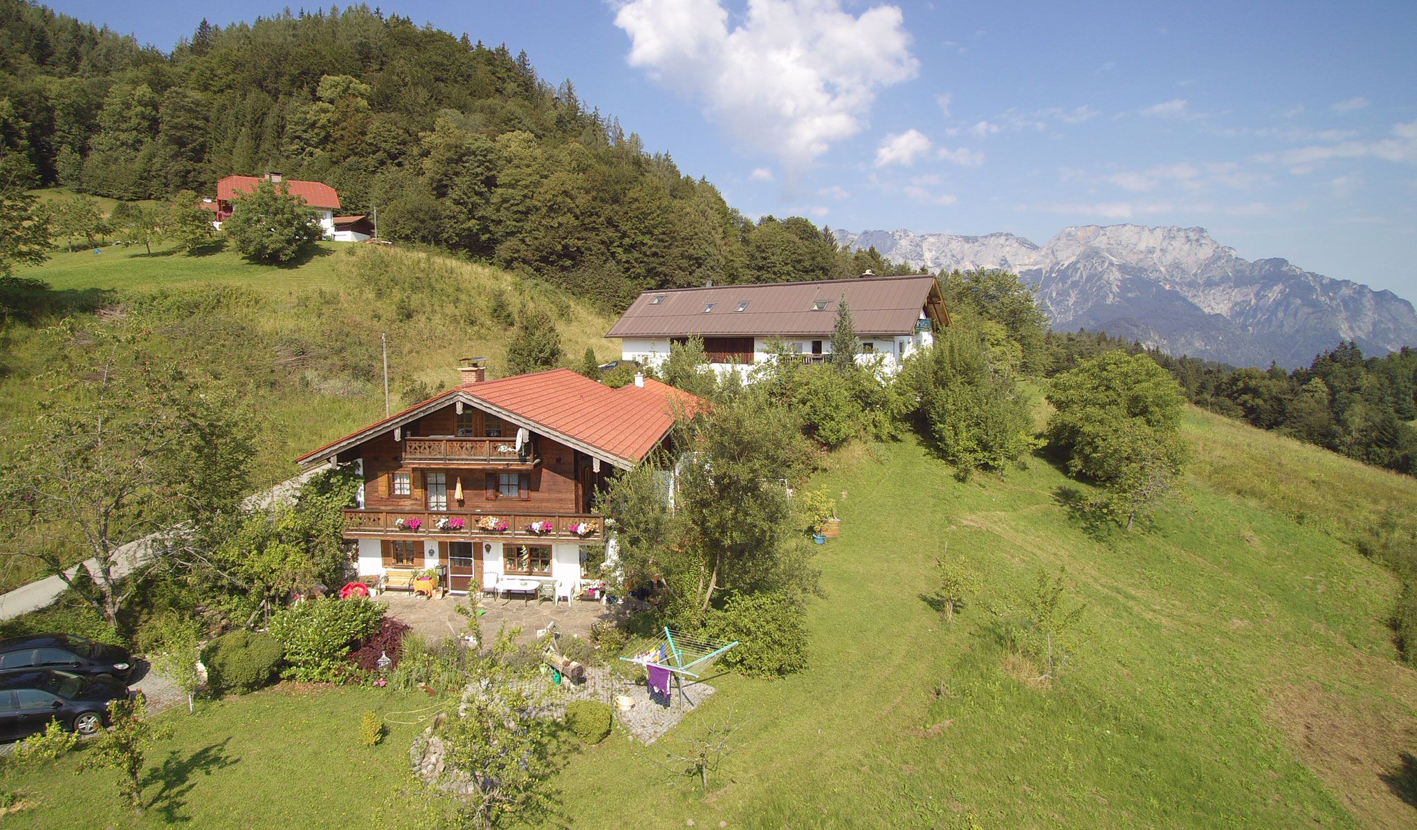 Das Lehnhäusl ist vom DTV mit 3 Sternen ausgezeichnet worden und liegt im Ortsteil Oberau in Berchtesgaden auf 850 Meter Seehöhe. Die ruhige und sonnige Lage bietet einen herrlichen Blick auf die Berchtesgadener und österreichischen Berge. Alle Ausflugsziele des Berchtesgadener- und Salzburger Landes sind in wenigen Autominuten erreichbar. Das Lehnhäusl ist der ideale Ausgangspunkt für Wanderungen und Ausflüge in der Region. Auch der Wintersport kommt hier nicht zu kurz. Langlaufloipen und das Skigebiet Rossfeld und auch die Zinkenlifte am Dürrnberg (österreich) liegen in unmittelbarer Nähe. Genießen Sie bei uns einen erholsamen Urlaub in der beeindruckenden Bergwelt von Berchtesgaden! Möchten Sie Ihren Hund mitbringen? Dann fragen Sie für unsere Ferienwohnungen an.