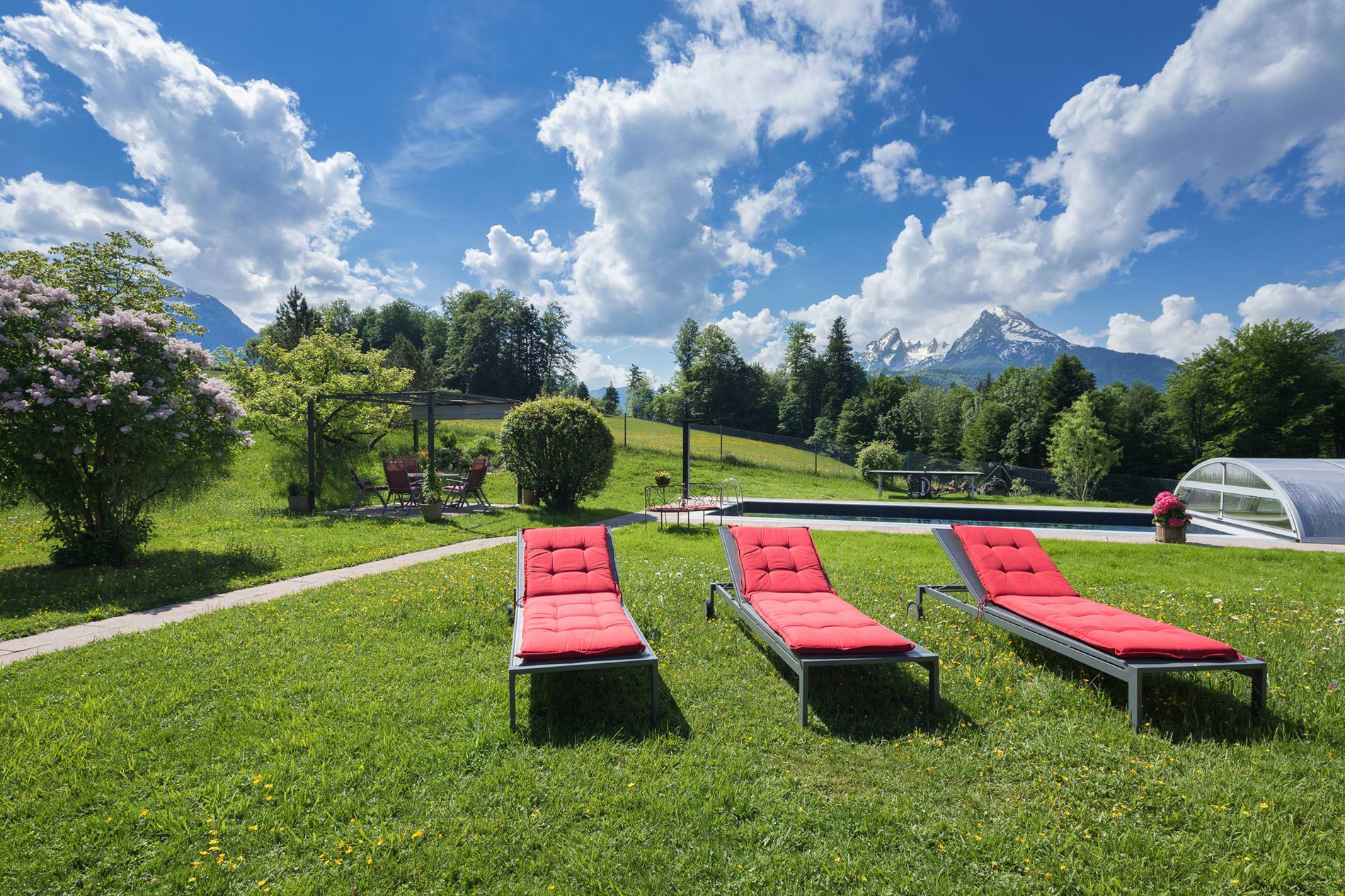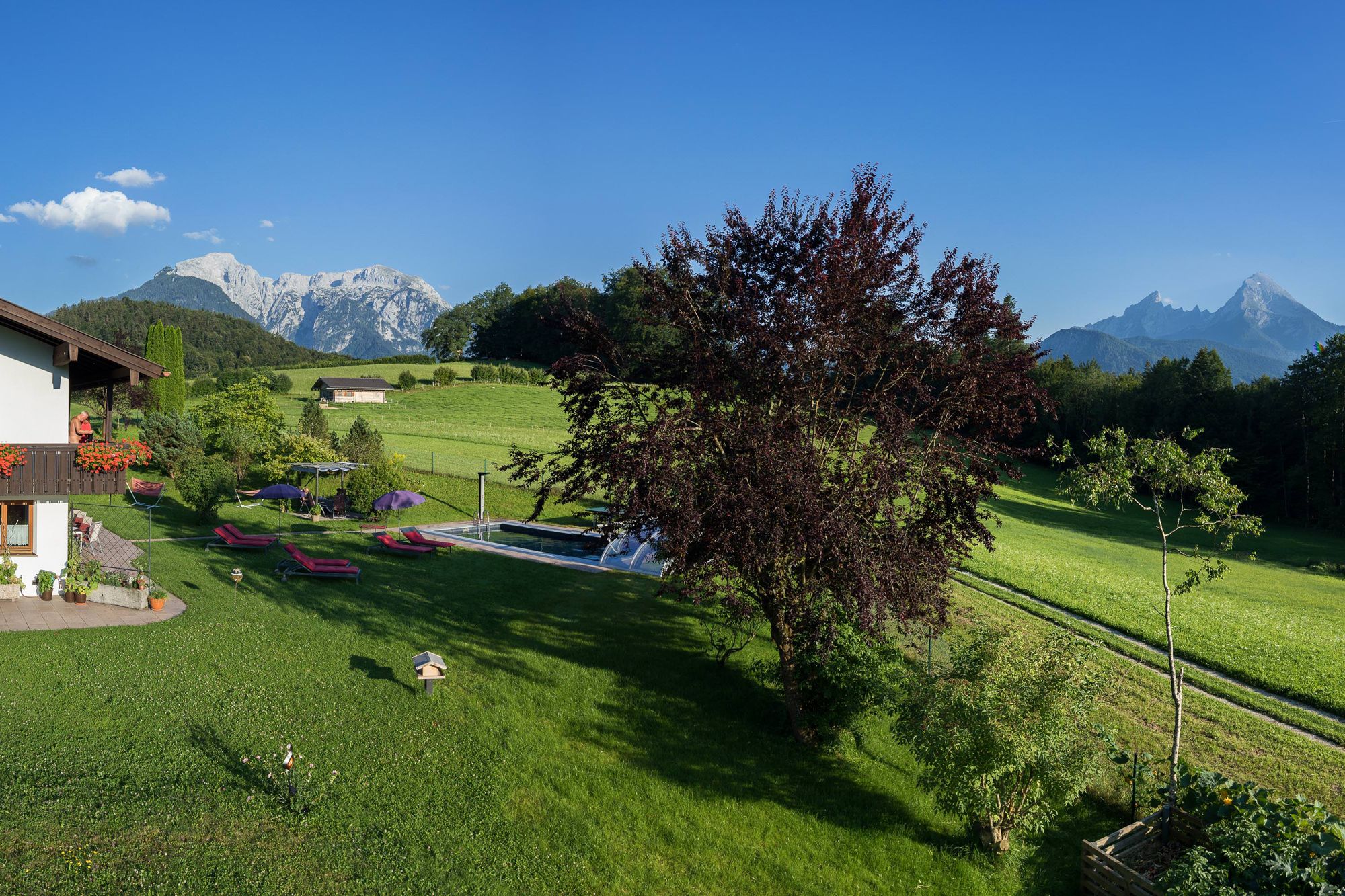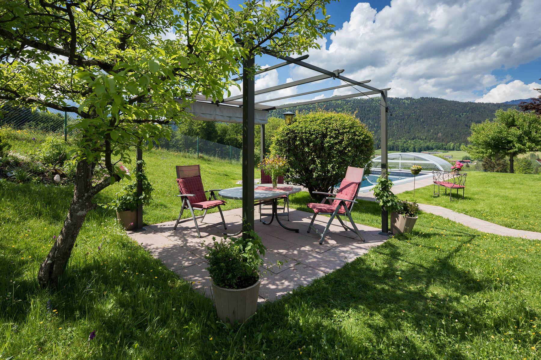 Entdecken Sie Pension Elvira, ein sonniges Paradies mit voll ausgestatteter Gästeküche, E-Tankstellen, Solaranlage, Garten, beheiztem Freibad und Sauna.