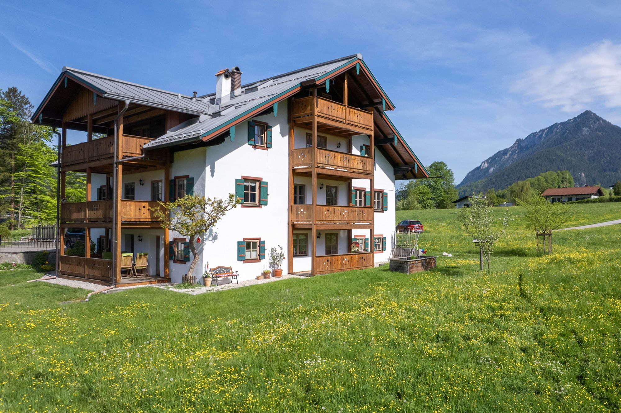 Entdecken Sie das Roßpointlehen, ein abgelegenes Paradies mit atemberaubendem Blick auf den Watzmann im Nationalpark Berchtesgaden, inklusive Annehmlichkeiten wie kostenlosem WLAN und E-Ladestation.