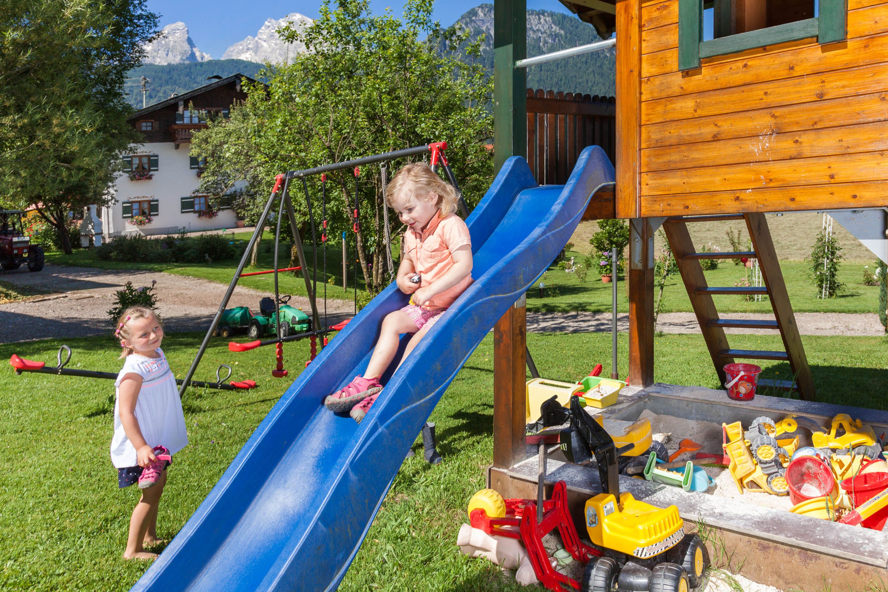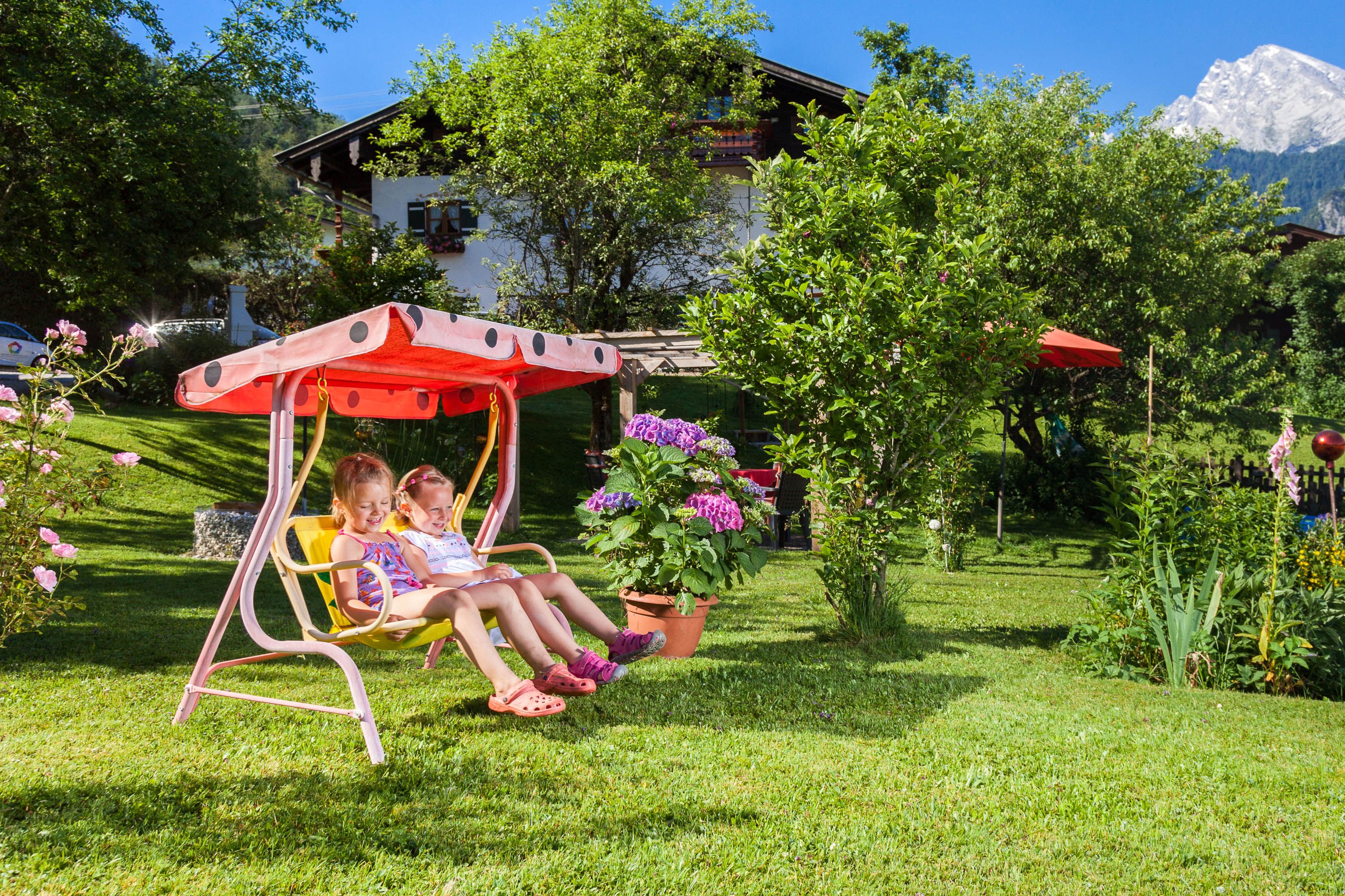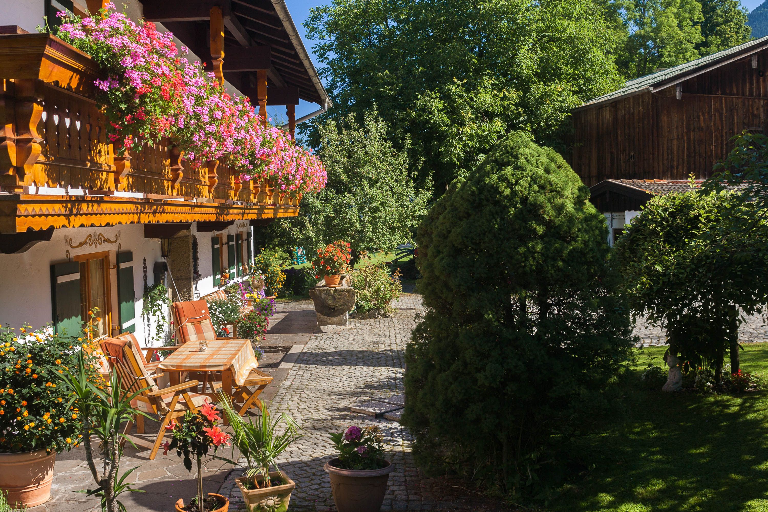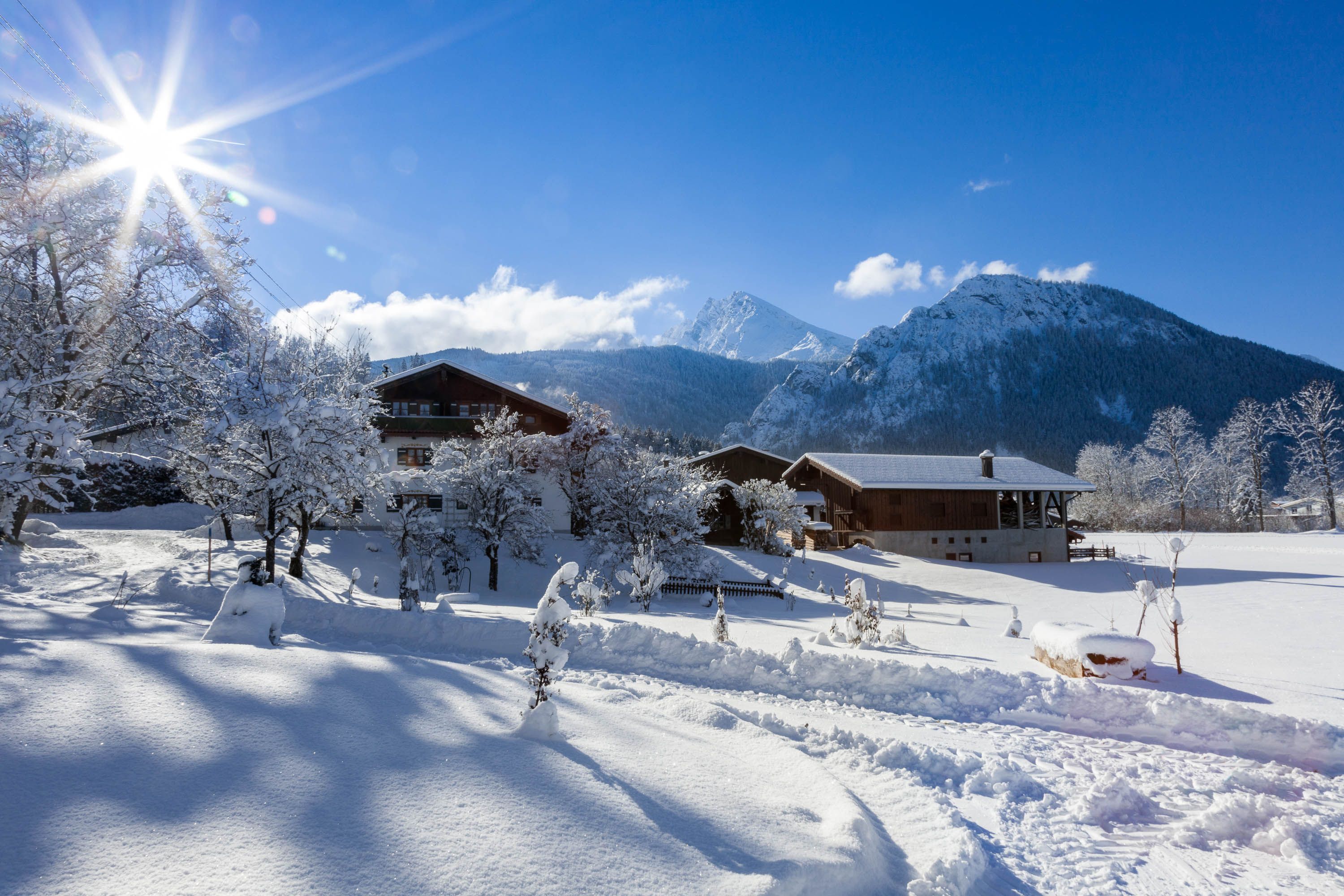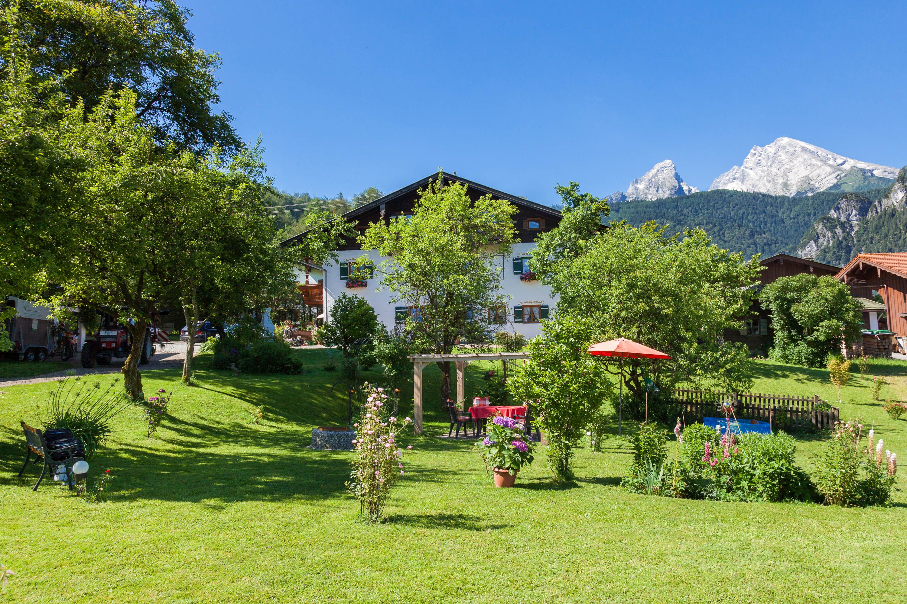 Herzlich Willkommen in der traumhaften Alpen Nationalpark Gemeinde Schönau am Königssee.Ein Urlaubsdomizil für Kenner und Genießer. Zentral und trotzdem sehr ruhig gelegen ist unser liebevoll und gepflegtes Bauernhaus aus dem Jahre 1700. Inmitten saftiger Wiesen, umgeben von den Berchtesgadener Bergen, bietet es Ihnen ideale Voraussetzungen für einen gelungenen Urlaub. Genießen Sie die gespurten Langlaufloipen, die geräumten Winterwanderwege und das Familien Skigebiet Jenner bei strahlend blauem Himmel und kristallklarer Luft. Direkt vor dem Haus befinden sich genügend Parkplätze.Jede unserer sehr gepfelgten und im Landhaus Stil eingerichteten Ferienwohnungen verfügt über einen eigenen Balkon. Dort können Sie in der warmen Morgensonne in Ruhe frühstücken. Der traumhafte Blick auf die umliegenden Berchtesgadener Berge lässt sie verzaubern.Was wäre ein Urlaub auf dem Bauernhof ohne Tiere! Unser kleiner Streichelzoo bietet für die Kinder brave Spielkameraden. Spaß pur und ideal für Familien ist auch unser großer Garten wo sich die Kinder austoben können.