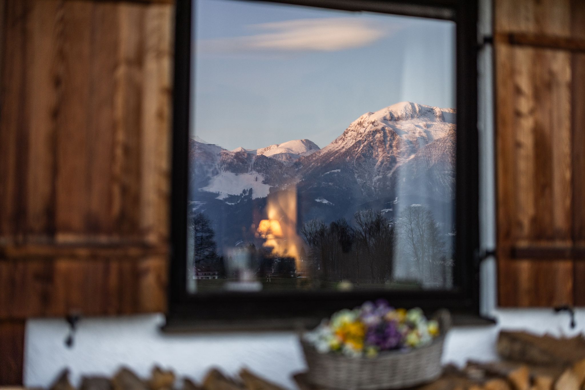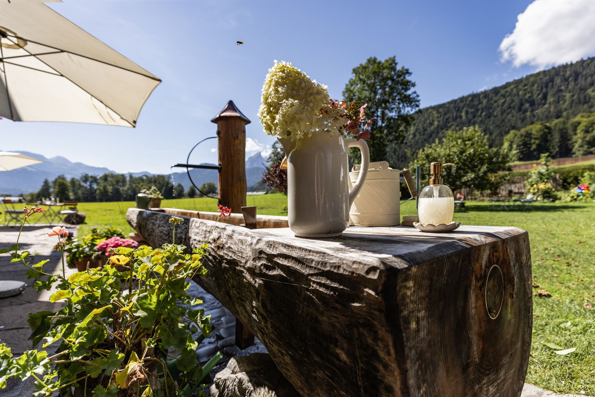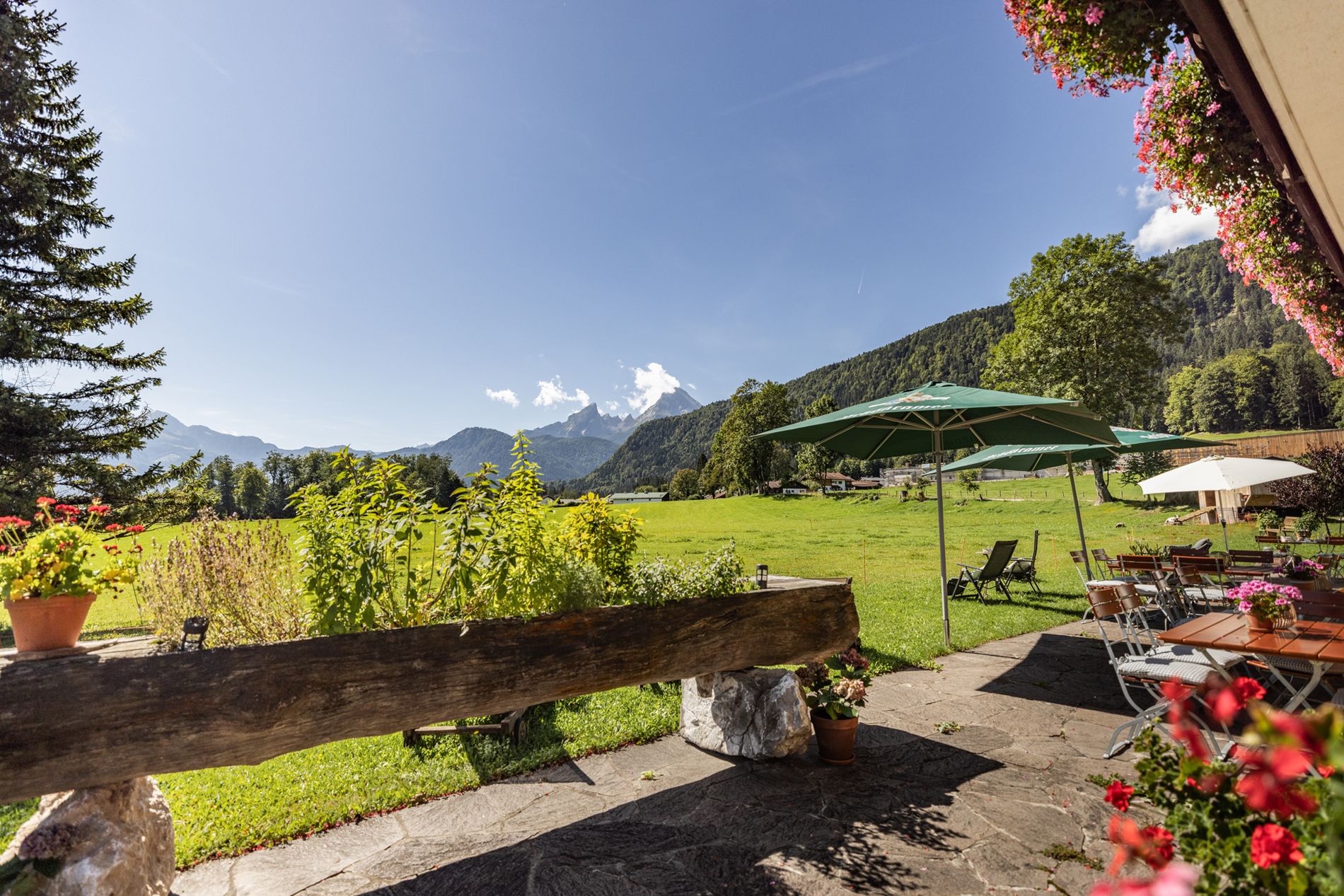 Erleben Sie einen unvergesslichen Urlaub auf dem malerischen Bauernhof Wassererlehen in Bischofswiesen bei Berchtesgaden, mit atemberaubendem Bergblick.
