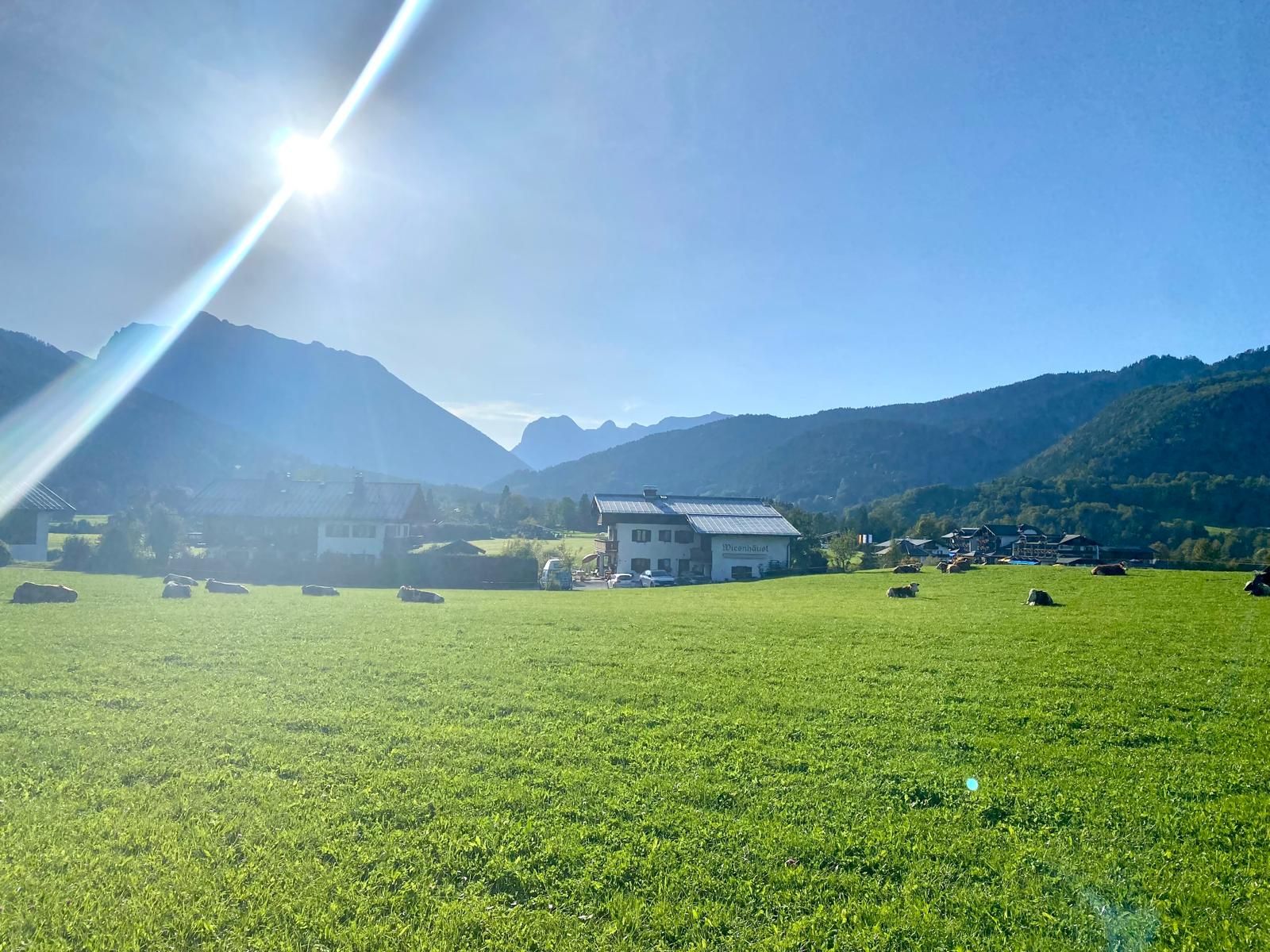 Entdecken Sie das Wiesnhäusl, eine sonnige Ferienwohnung umgeben von grünen Wiesen und Bergpanorama, ideal für einen erholsamen Urlaub.