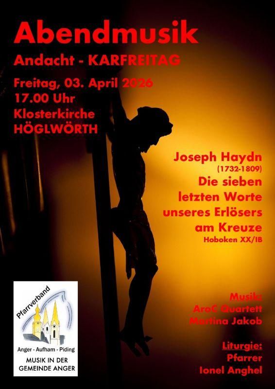Herzliche Einladung zur Abendmusik-Andacht in der Klosterkirche Höglwörth. Gespielt wird das Passionswerk "Die sieben letzten Worte unseres Erlösers am Kreuze" von Joseph Haydn.