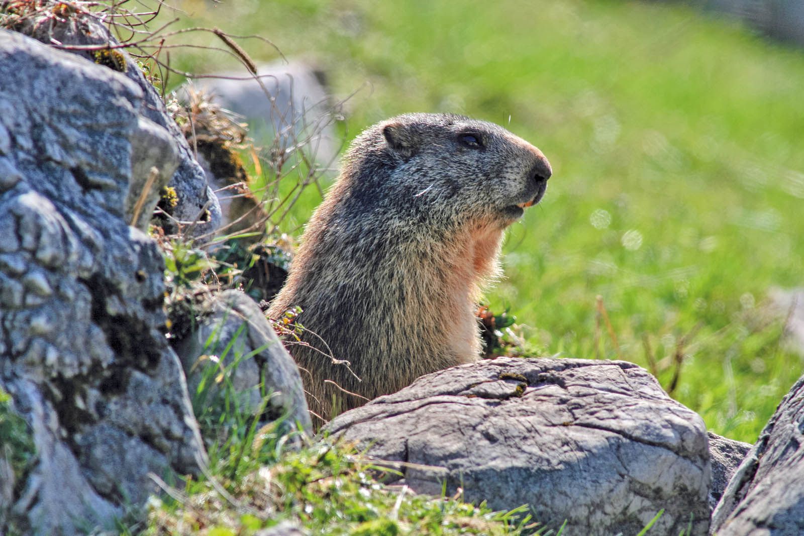 Das Murmeltier verbringt die heiße Mittagszeit am liebsten in seinem kühlen Bau. Deshalb machen wir uns früh auf den Weg zur Königsbachalm. Mit etwas Glück können wir dort die Murmeltiere, in Berchtesgaden Mankei" genannt, beobachten und auf spielerische Weise Interessantes über die bekannten Alpentiere erfahren.