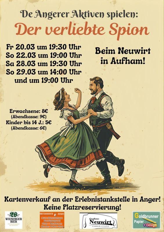 Die Aktiven des GTEV Anger-Höglwörth laden herzlich ein zum Theaterbesuch beim Neuwirt in Aufham.