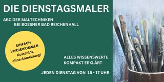 Jeden Dienstag von 16 - 17 Uhr stellen wir in einstündigen Malsessions verschiedene künstlerische Techniken vor.