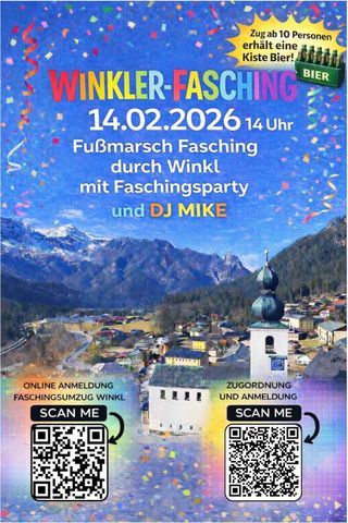 Endlich wieder Faschingsumzug in Winkl.Die Fussgruppen werden wie früher durch Winkl gehen. Treffpunkt ist die Bushaltestelle. Für das leibliche Wohl ist bestens gesorgt von den Vereinen. Stimmung ist wie immer in Winkl perfekt.