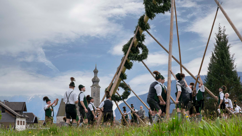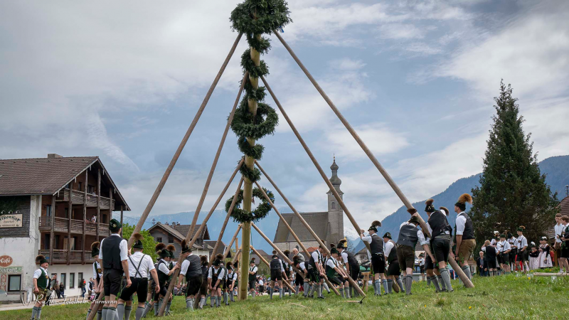 Maibaumaufstellen des GTEV Anger-Höglwörth am Dorfplatz in Anger