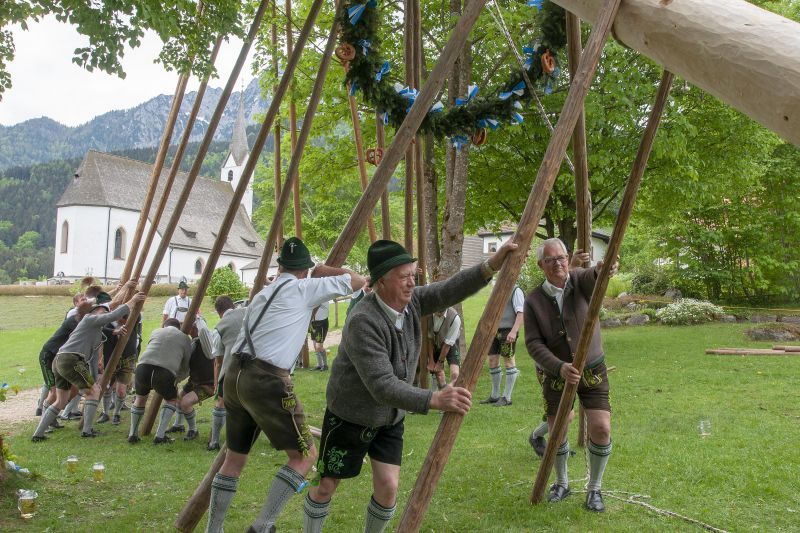 Maibaumaufstellen des GTEV d´Hochstaufner am Dorfplatz Aufham