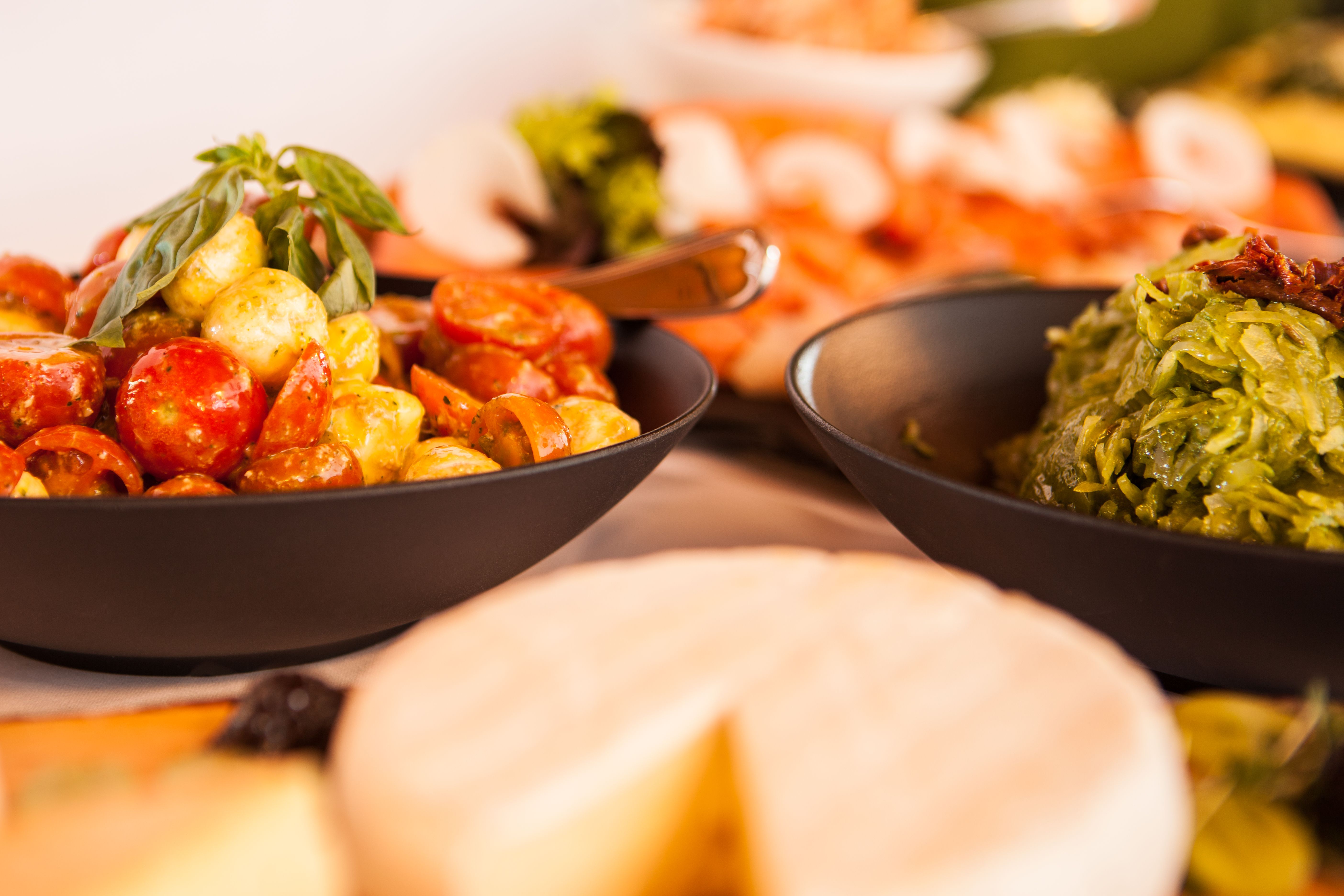Zusätzlich servieren wir: frisches Focaccia und Suppen.