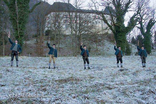 Silvesterschießen der Böllerschützen am Schloss Staufeneck sowie am Panoramaweg Piding (Hafner)