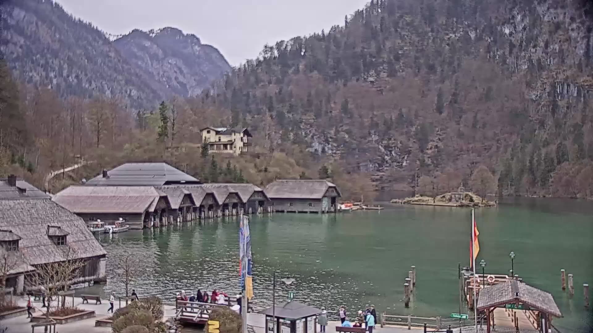 Die Live-Webcam am Hotel Königssee zeigt Dir das Nordufer des Königssees. Du blickst von den Bootshäusern unter der Villa Beust über die Insel Christlieger und den See hinüber zum Seerestaurant Echostüberl.